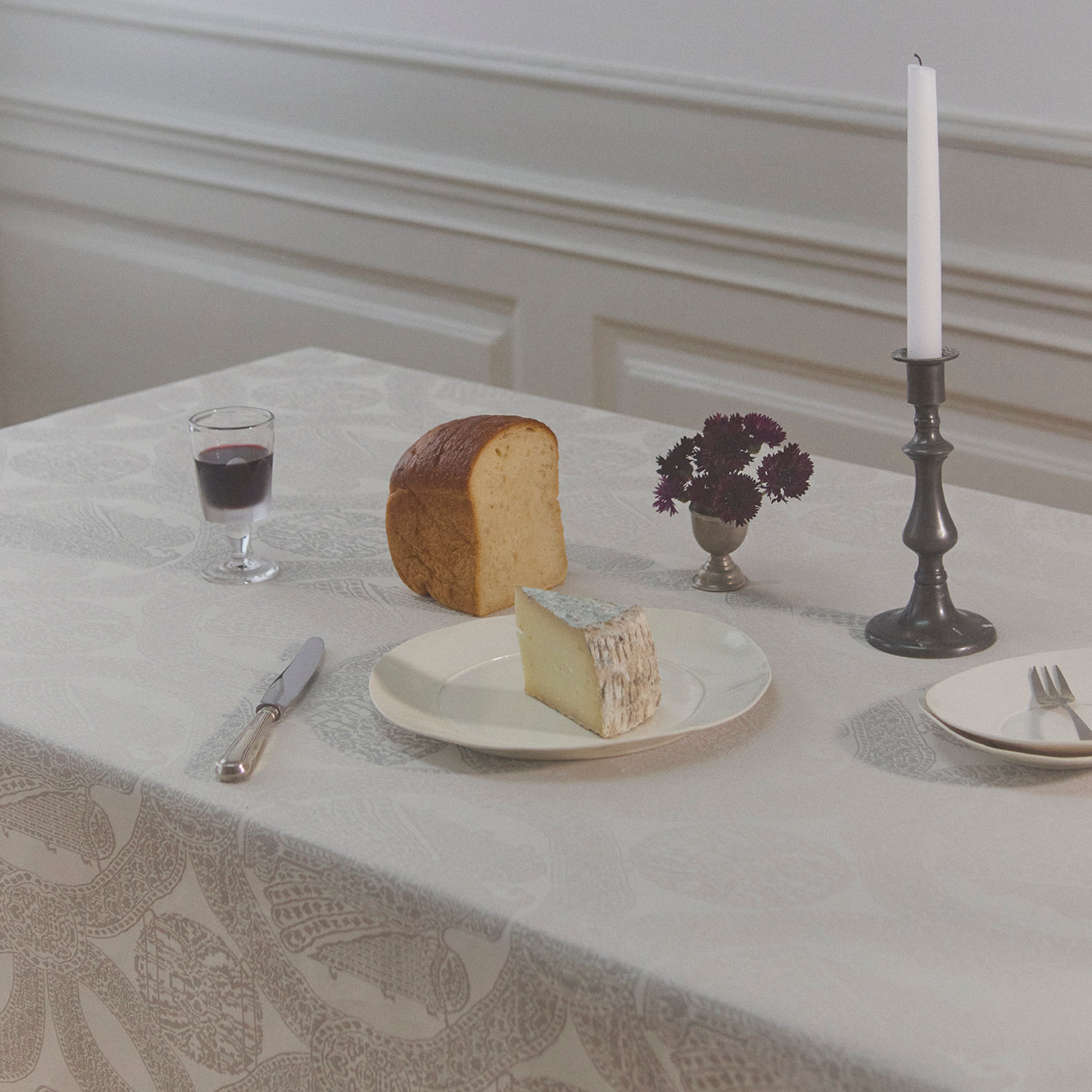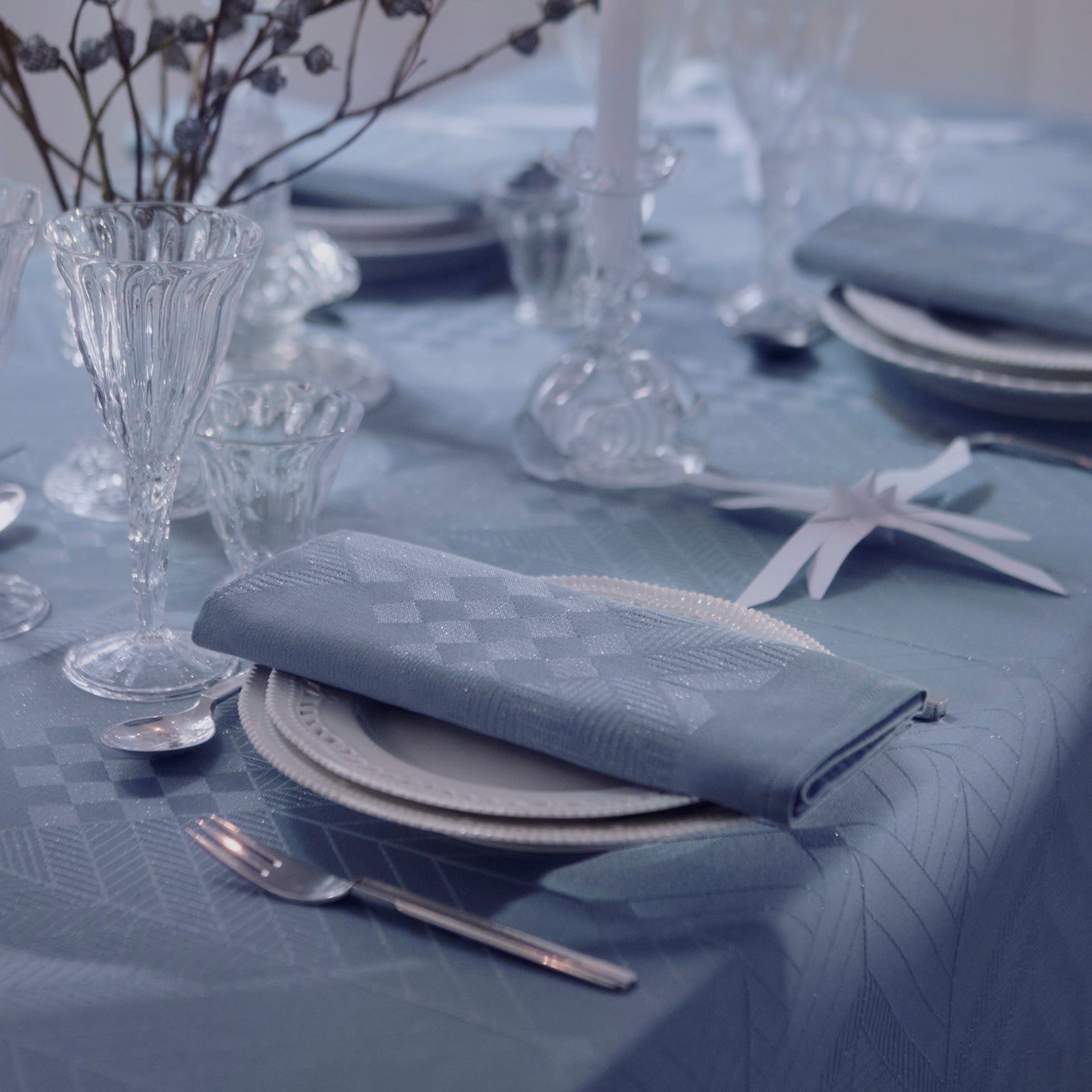 Georg Jensen Damasks juldesign skapar en elegant och nostalgisk ram runt det stämningsfulla julbordet.