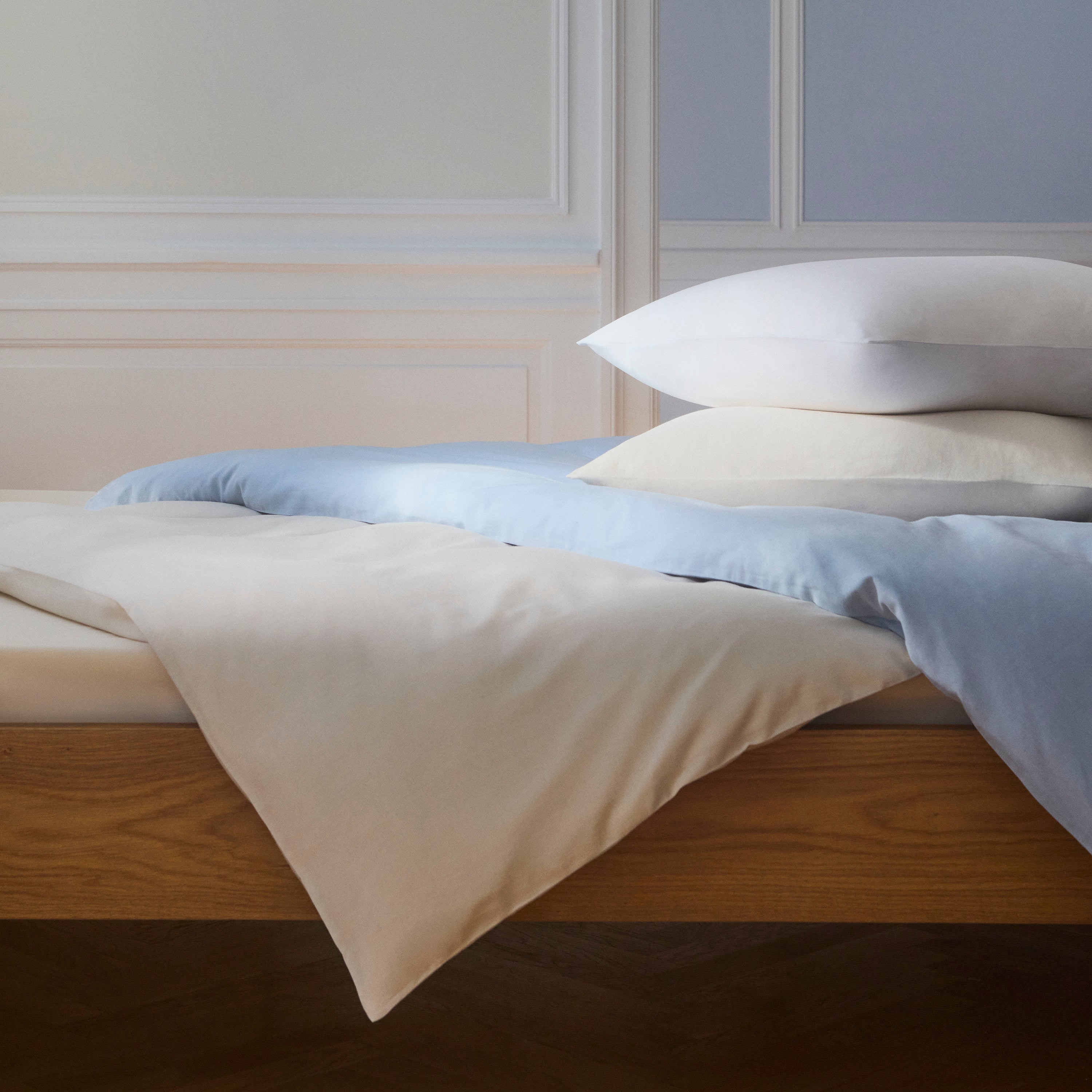 Even sängkläder i linne och bomull. Väven förenar linnets vackra textur med bomullens fina mjukhet.