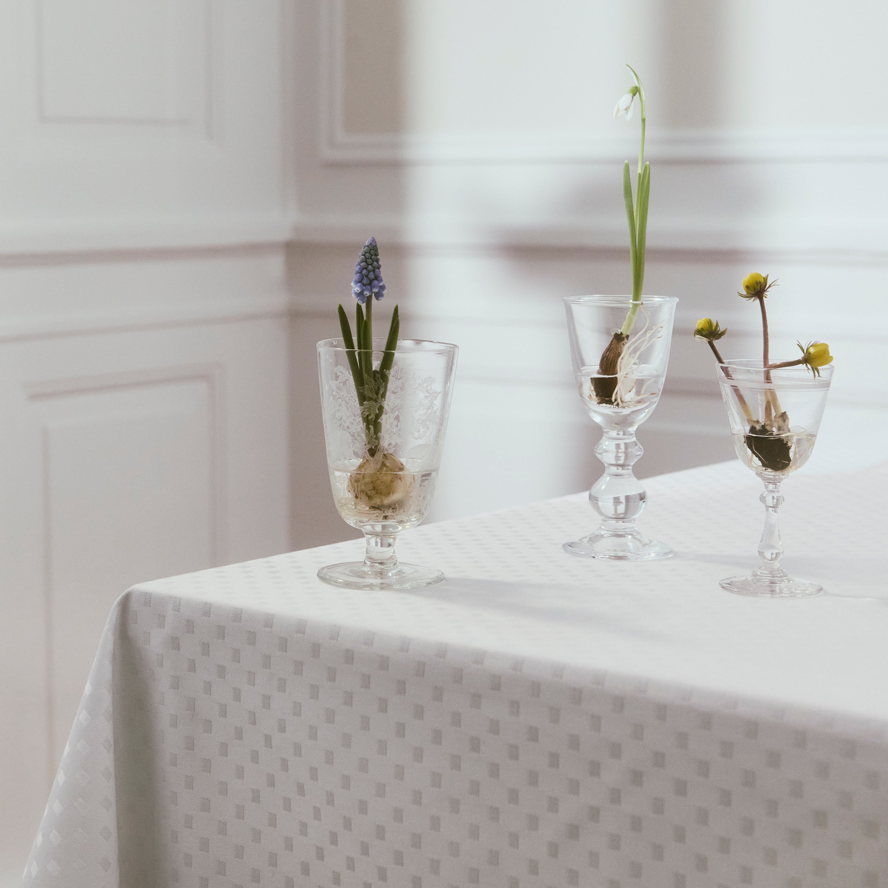 Georg Jensen Damask har allt för dukningen. Från damastvävda dukar och servetter i vackra mönster till handdoppade stearinljus i matchande färger.