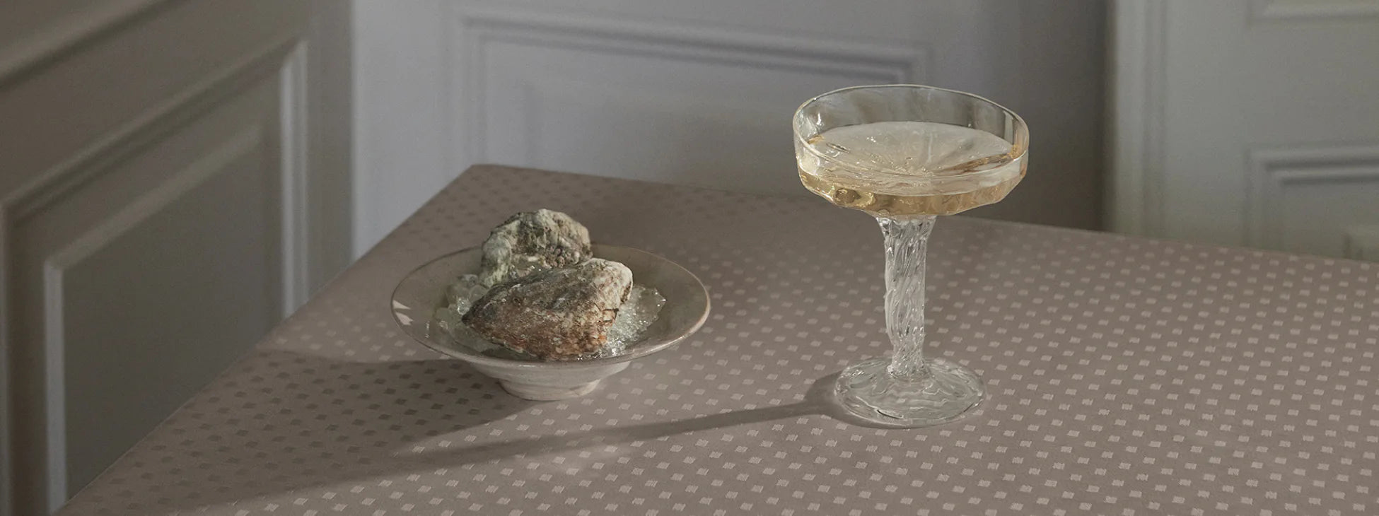 Vi kan också sy dukar som passar vissa typer av ovala bord. För bredder på över 165 cm har vi också möjlighet att öka dukens bredd. Vi mönsterpassar då två längder av damasttyg och syr diskret ihop dem i mitten.