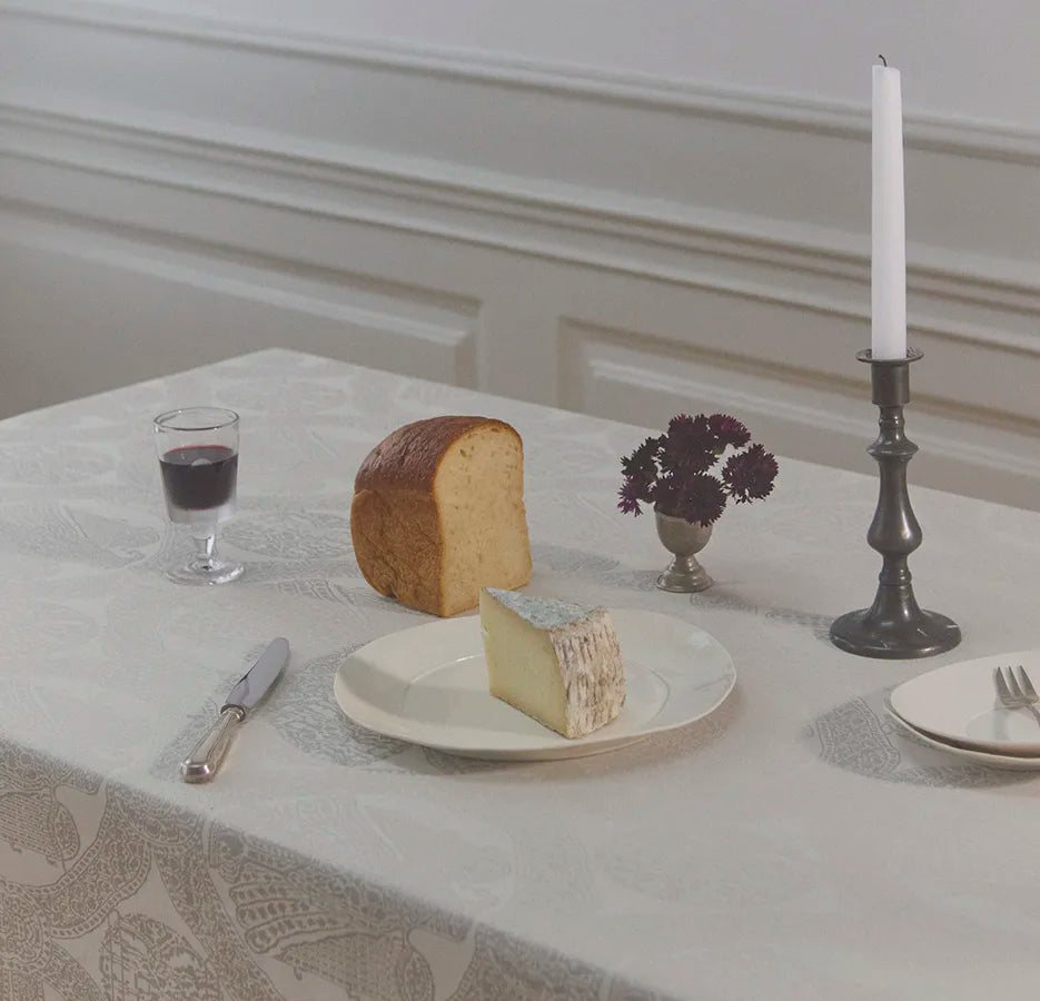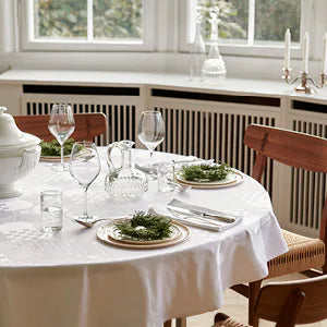 Våra damastvävda dukar är tillverkade av 100 % egyptisk dubbeltvinnad kammad bomull.