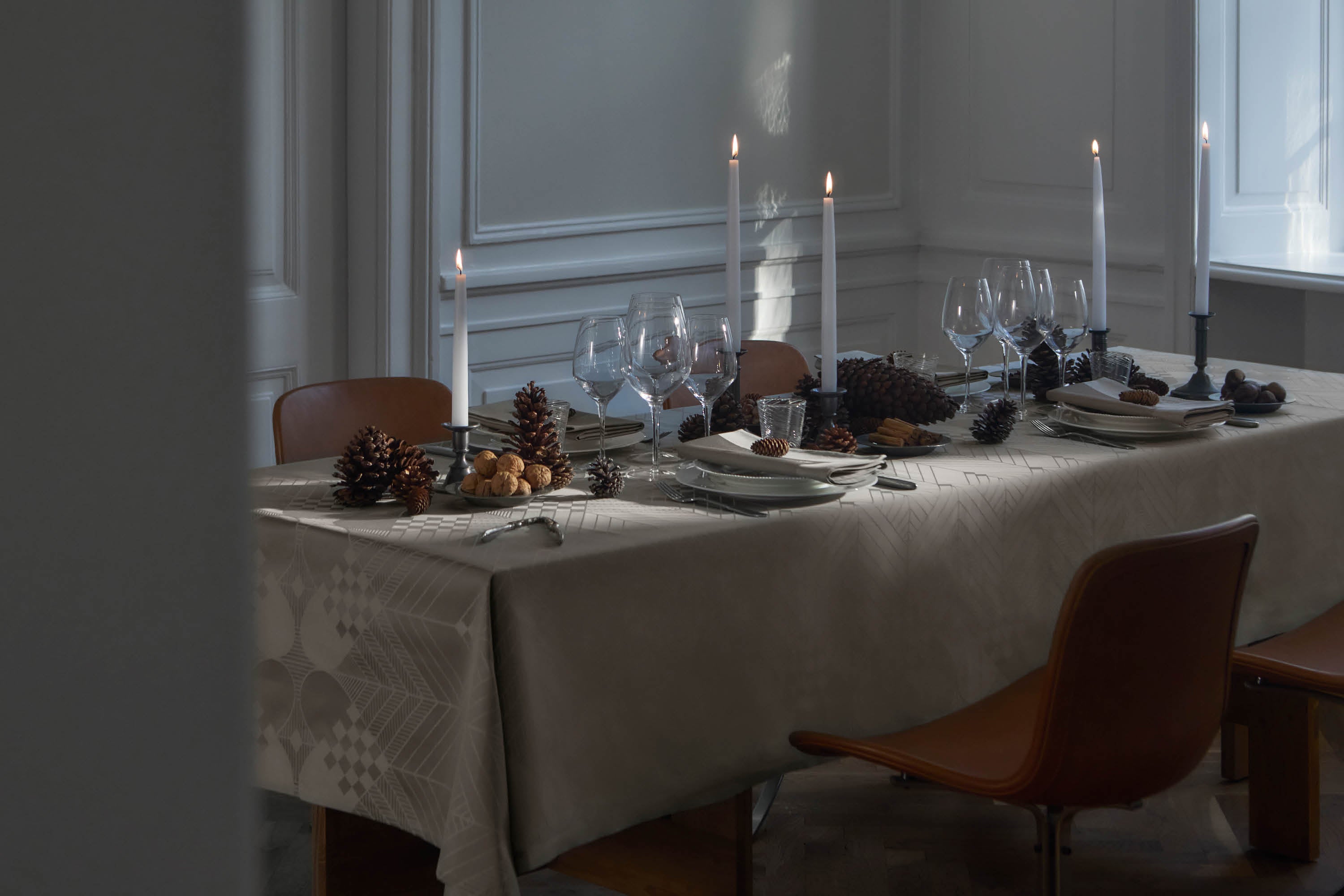 Duk, bordslöpare och bordstablett i vår juldesign kommer i den nya färgen Hazel Wood, liksom den enkla Damask-servetten med broderad logotyp. Så att du kan duka upp till både stora och små tillfällen den här julen.
