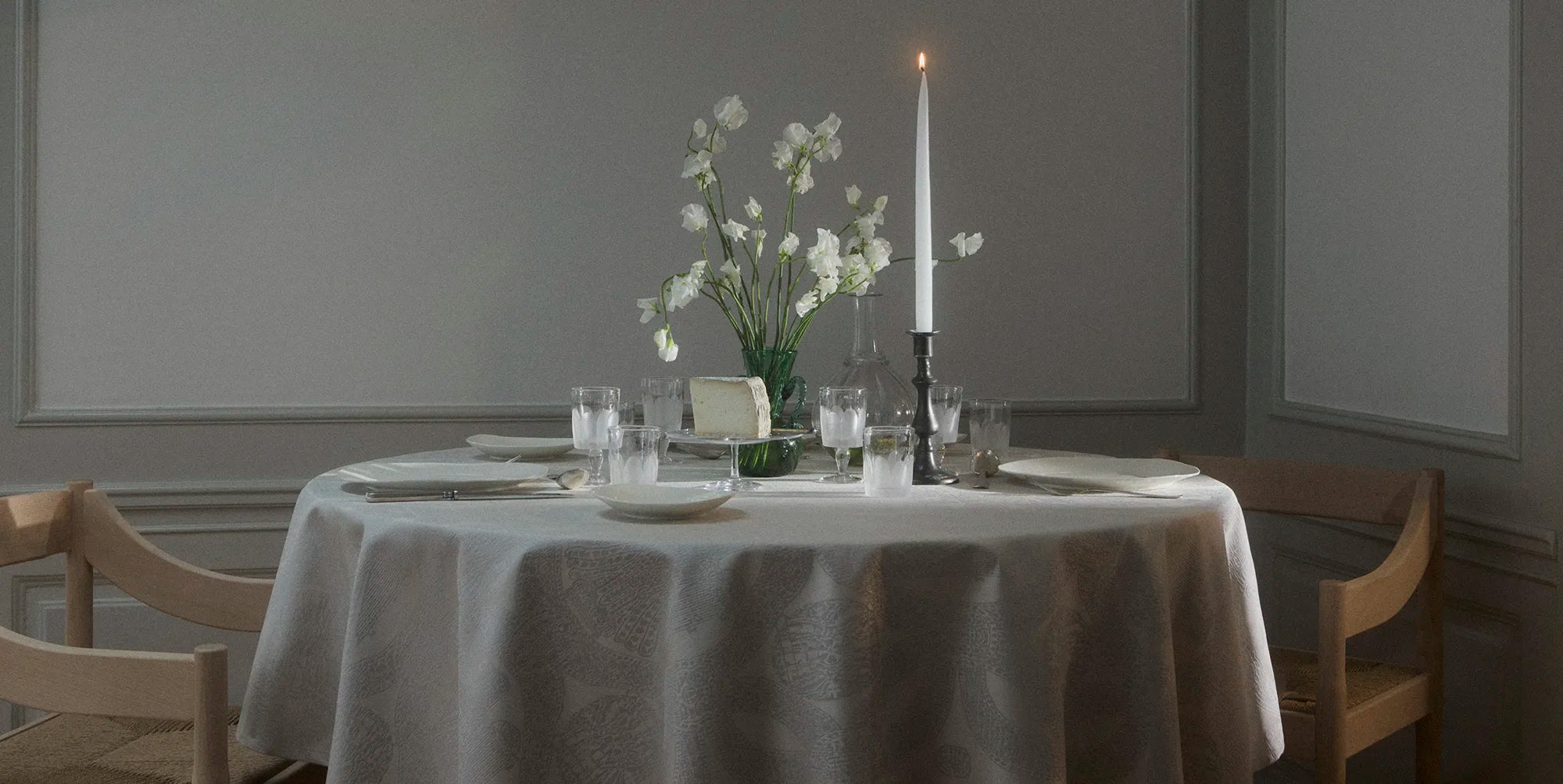 ”Sct. Knuds Ørne-duken rymmer både viktig dansk historia och personliga släktberättelser som ger den en speciell plats i Georg Jensen Damask-kollektionen. Vi har kunder som berättar att de ärvt duken av sin gammelmormor eller gammelfarmor eller ätit på den med sina mor- och farföräldrar. Det är en duk som förenar generationer.” Anne Hviid, ägare av Georg Jensen Damask.