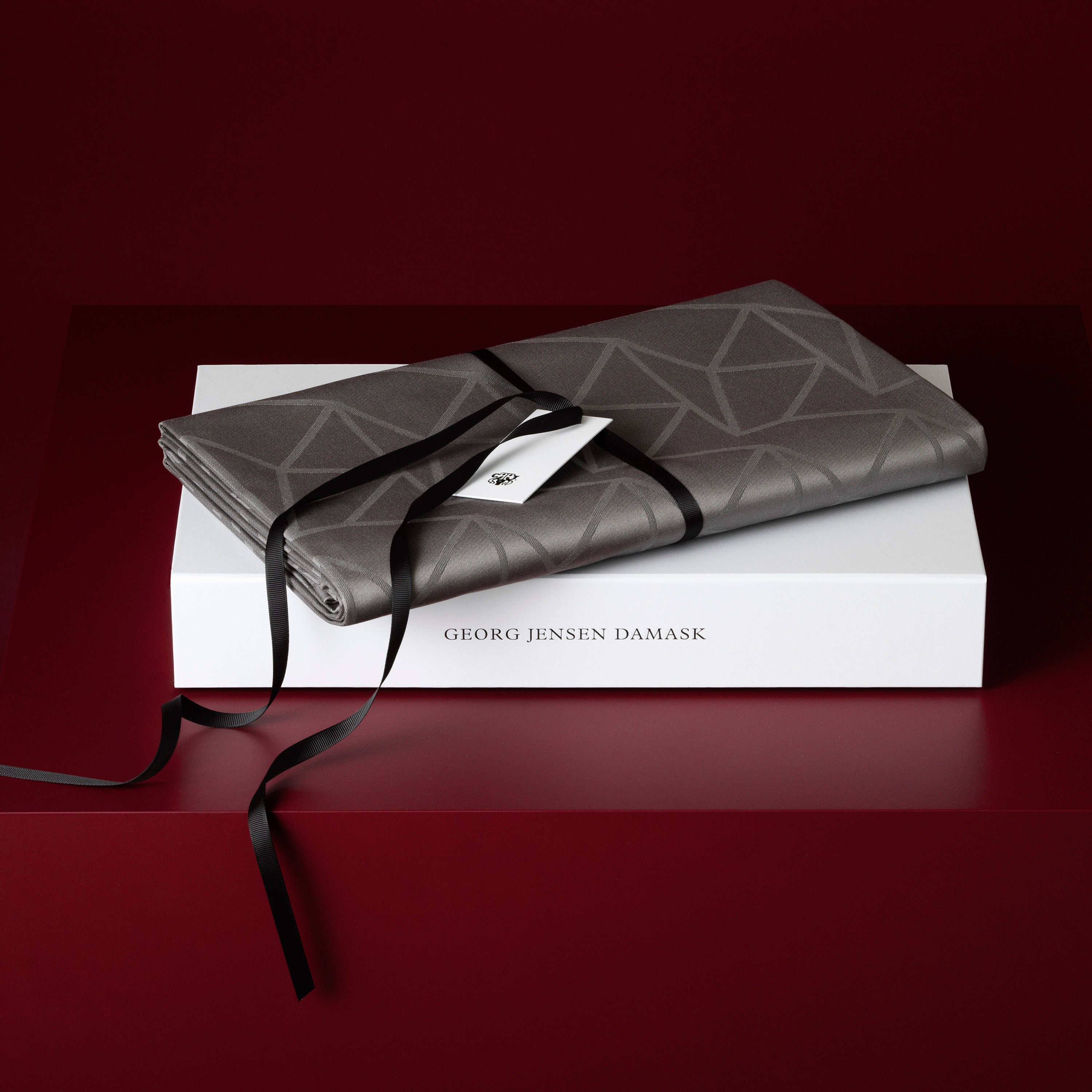 En elegant damastvävd duk i klassisk design, skapad av Arne Jacobsen. Det tidlösa mönstret lanserades år 2002 som en hyllning till den danska arkitekten på 100-årsdagen av hans födelse och för Arne Jacobsens designarv vidare i all sin enkelhet.