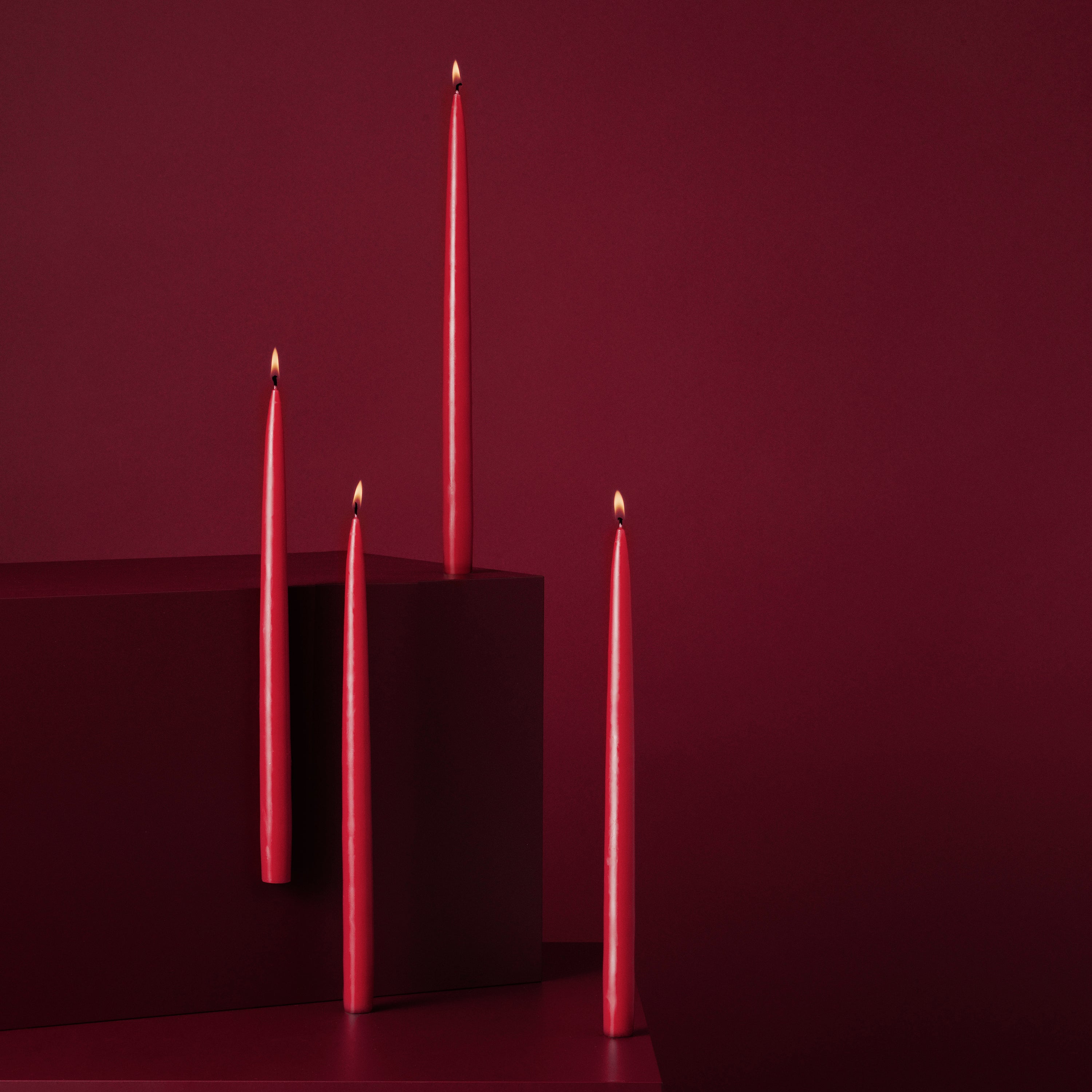 Sätt pricken över i på din dukning med långa, handdoppade ljus i vackra färger. Ljusen är genomfärgade och tillverkade av 100 % helt raffinerad paraffin av högsta kvalitet. Varje ljus mäter 35 cm och har en brinntid på 15 timmar. Du kan välja mellan åtta färger som är skapade för att matcha några av våra mest populära mönster.