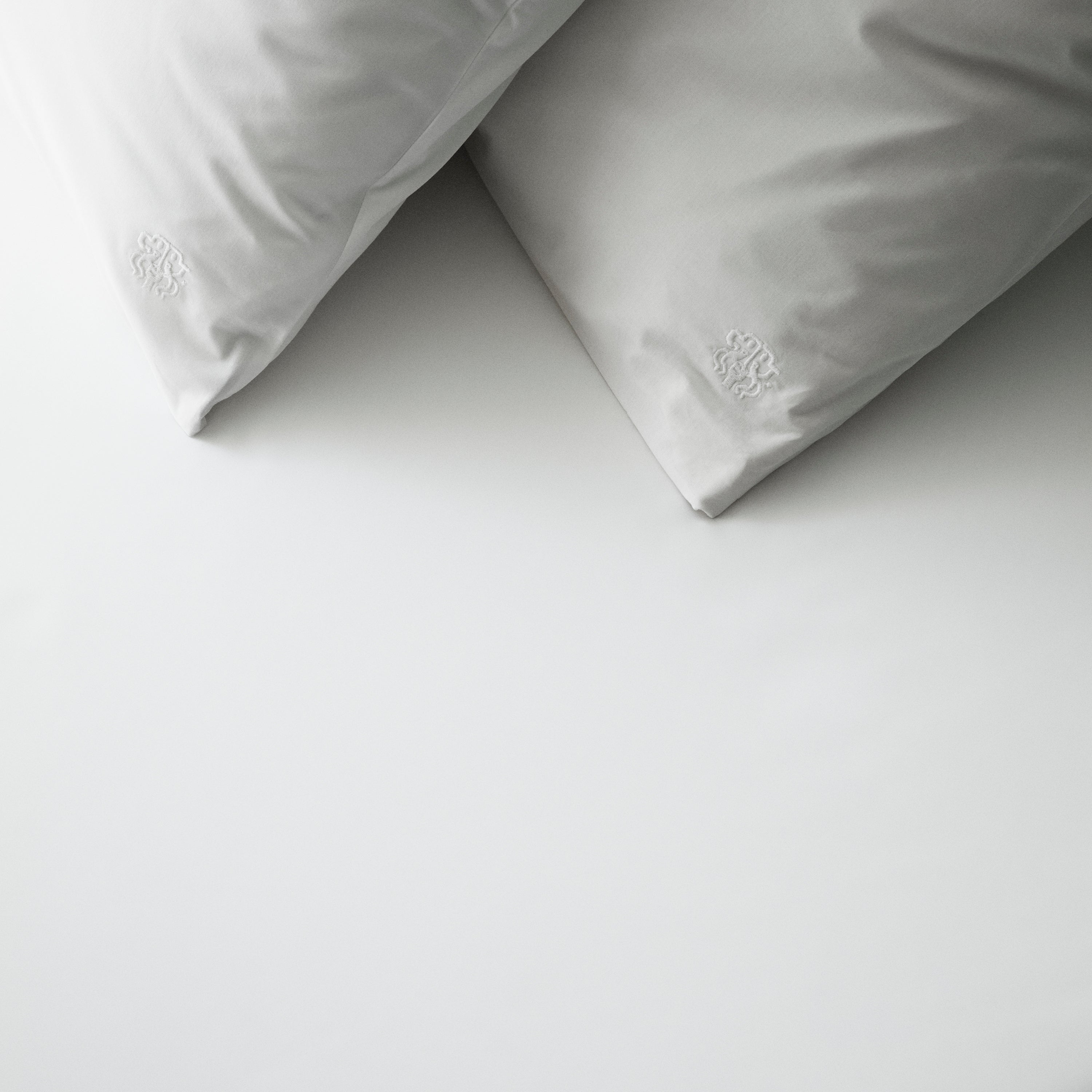 Med sin fina percaleväv är sängkläderna med samma namn krispiga och mjuka. Percale är lätta och andningsbara, vilket ger en god natts sömn. Designen är enkel, med en diskret broderad logotyp som enda detalj. Färgen Blue Haze är en dämpad blå nyans.