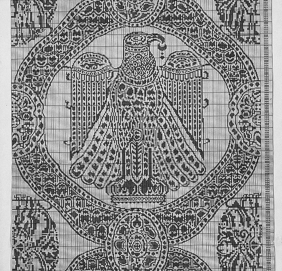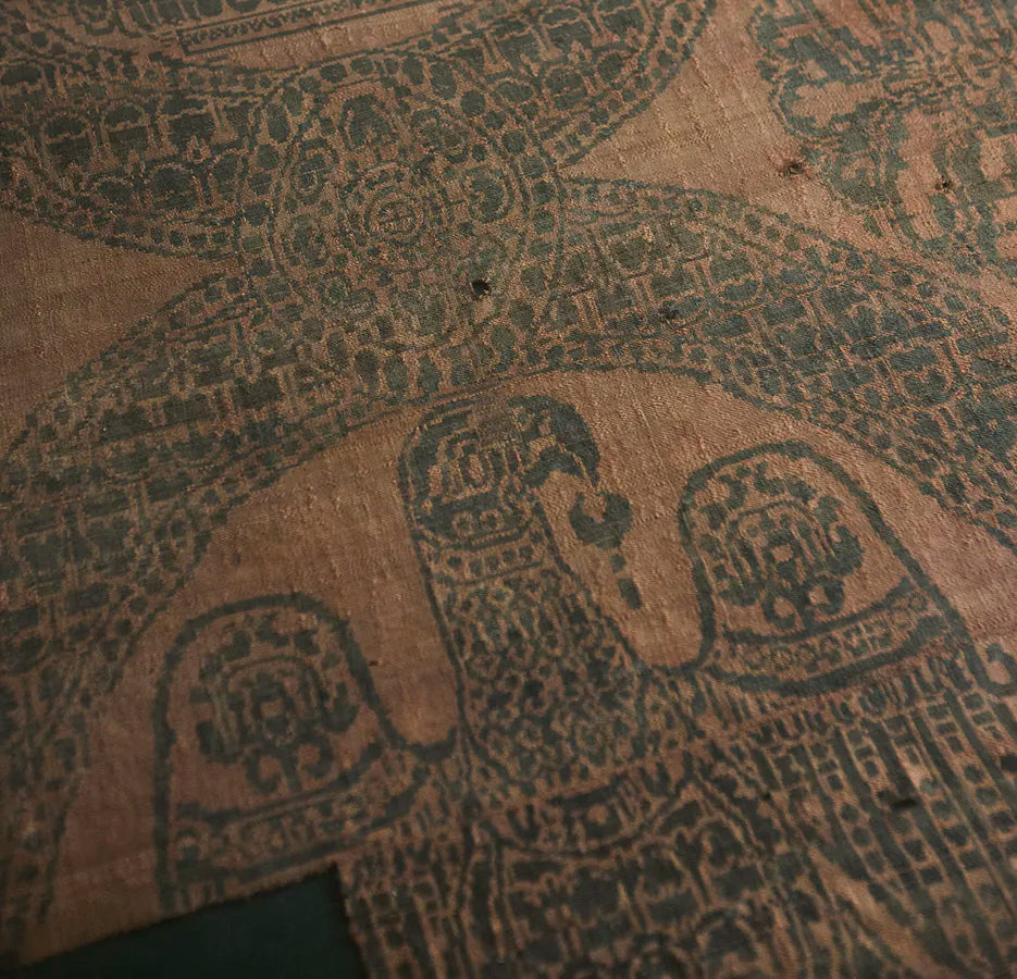 Som en symbol för kunglig makt är tyget, som tros härstamma från Bysans, dekorerat med ett motiv av örnen som med sin generositet alltid lämnar något efter sig när den äter. Örnen håller ett halvmåneformat smycke i sin näbb och har vingarna halvt utfällda. Den omges av ett ovalt medaljongformat arabeskmönster.