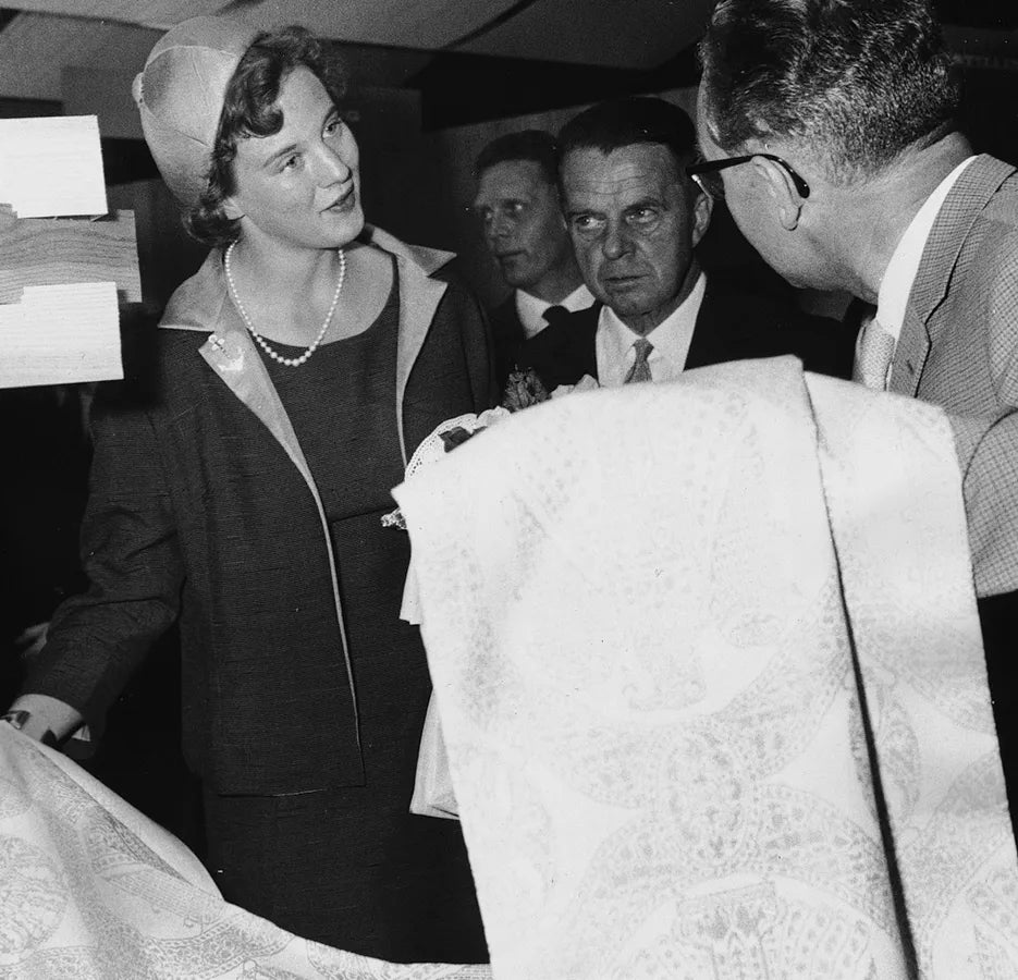 Billede 2: H.M. Dronning Margrethe med Sankt Knuds Ørnedug, 1962. Foto: Søndergaard Foto.
