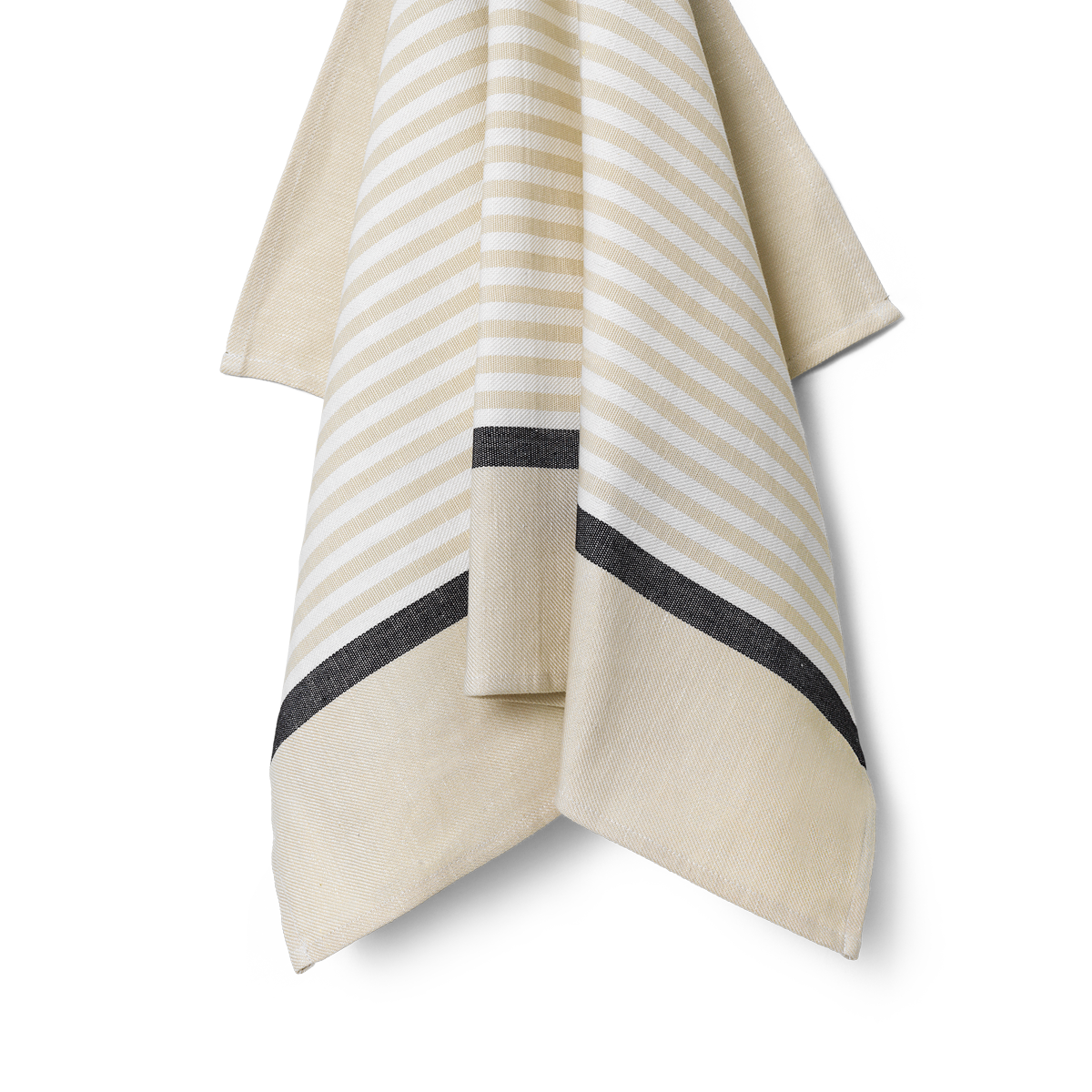 Abild er et klassisk viskestykke med harmoniske striber som bærende designelement. Viskestykket er vævet i en kraftig hør- og bomuldskombination, der giver optimale tørreegenskaber.
