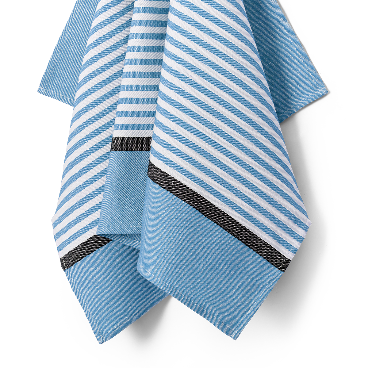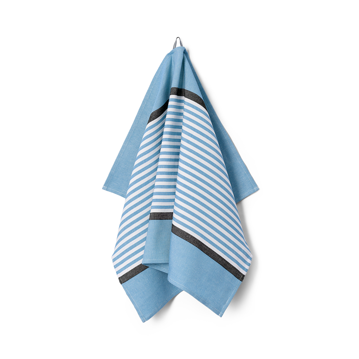 Det stribede viskestykke Abild er et velkendt design i Georg Jensen Damasks kollektion. Viskestykket er designet i 1991 af Bent Georg Jensen og vævet i en kraftig hør- og bomuldskombination, der giver optimale tørreegenskaber. Farven Bright Blue er en klar blå farve.