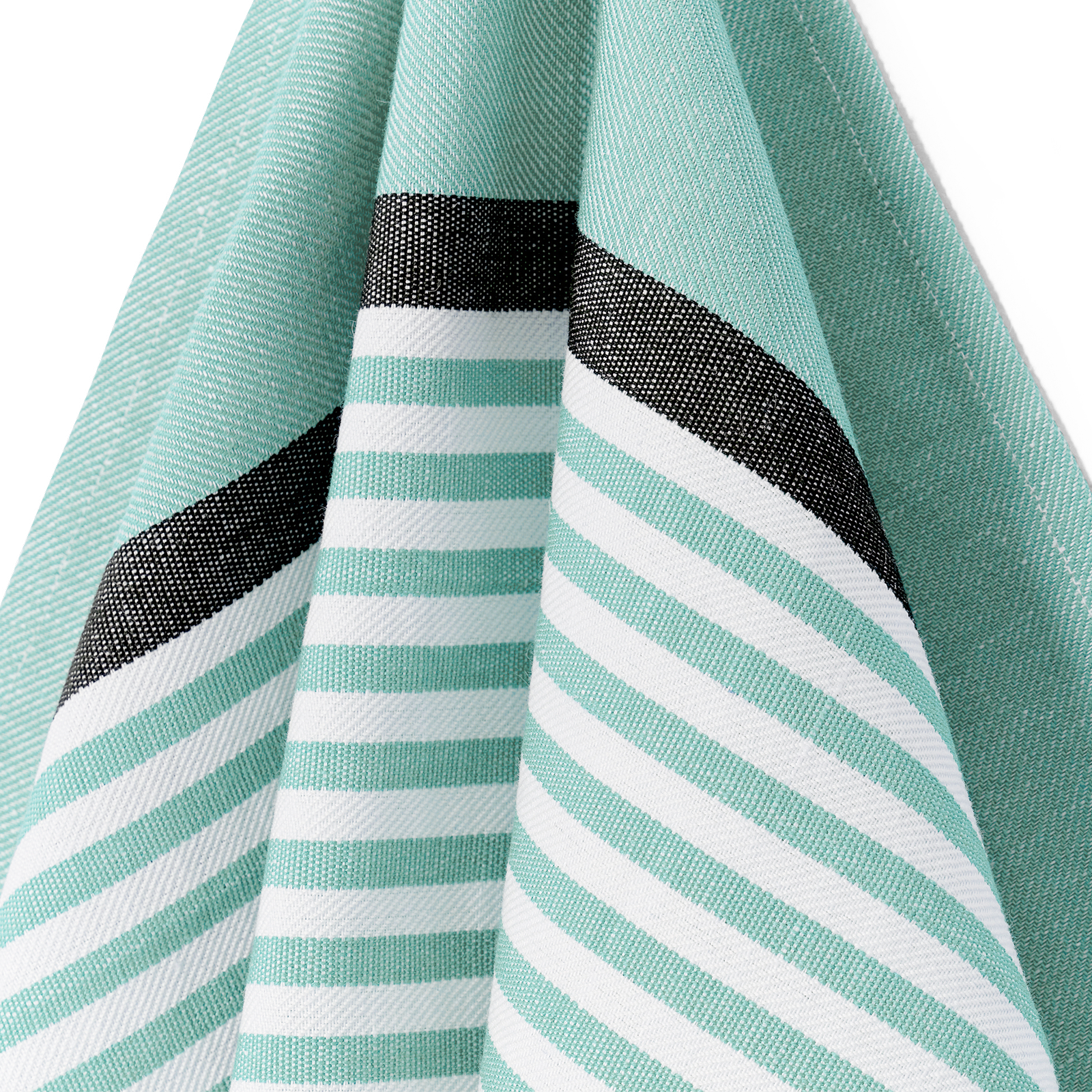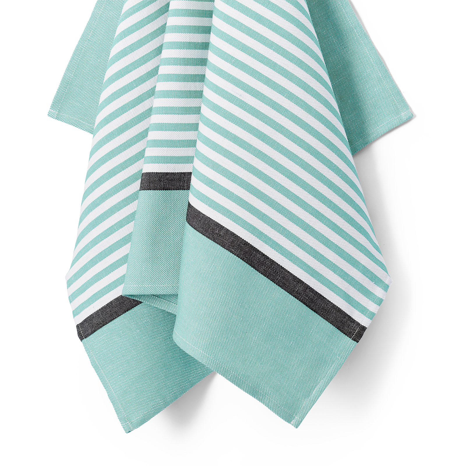 Det stribede Abild viskestykke er en klassiker i Georg Jensen Damasks kollektion. Abild er designet af væver og tekstilingeniør Bent Georg Jensen, som forener kvalitet, funktion og design på elegant vis. Viskestykket er vævet i en kombination af 50 % hør og 50 % bomuld, der giver det optimale tørreegenskaber. Den klare, blågrønne farve, Deep Glass, er inspireret af farven på råglas.