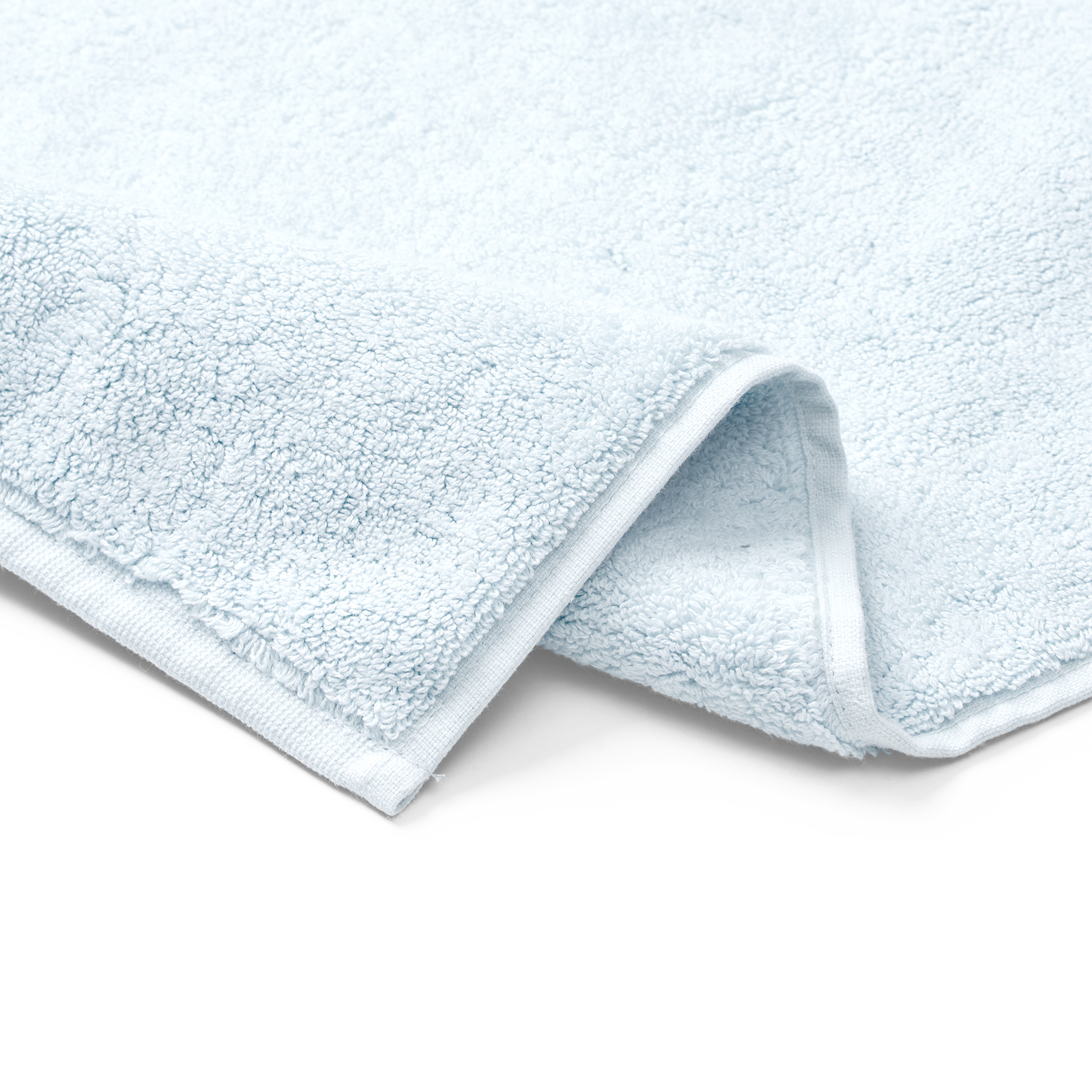 Damask Terry bademåtten har et enkelt udtryk med Georg Jensen Damasks ikoniske logo indvævet som elegant detalje. Minimal Blue er en hel let variant af lyseblå med et strejf af aqua.