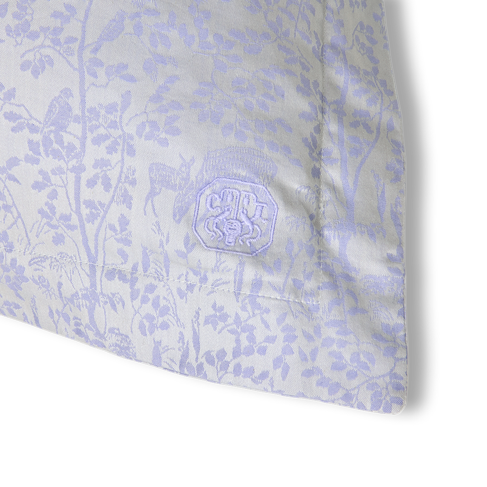 Et elegant mønster med dådyr, kaniner og fugle blandt nyudsprungne træer træder smukt frem i det jacquardvævede pudebetræk, Forest. Mønstret er skabt med inspiration hentet fra en smuk 1800-tals gobelin fra Georg Jensen Damasks arkiver.