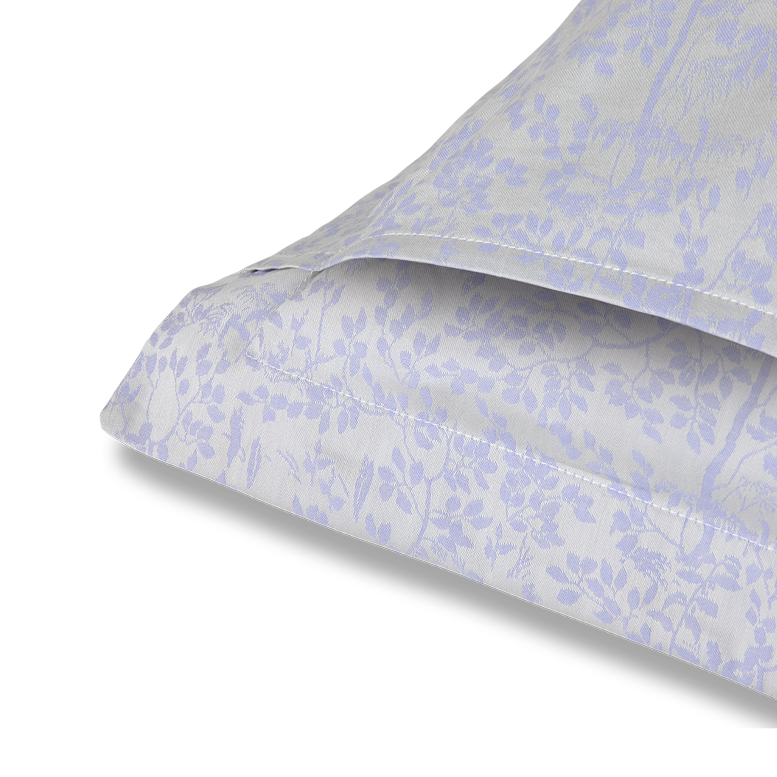 Pudebetrækket er skabt i 100 % økologisk bomuld. Farven Clear Blue er en støvet, lys nuance af blå.