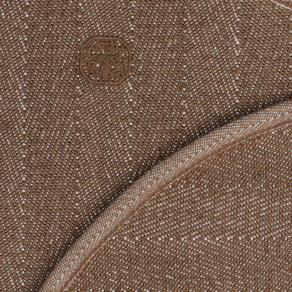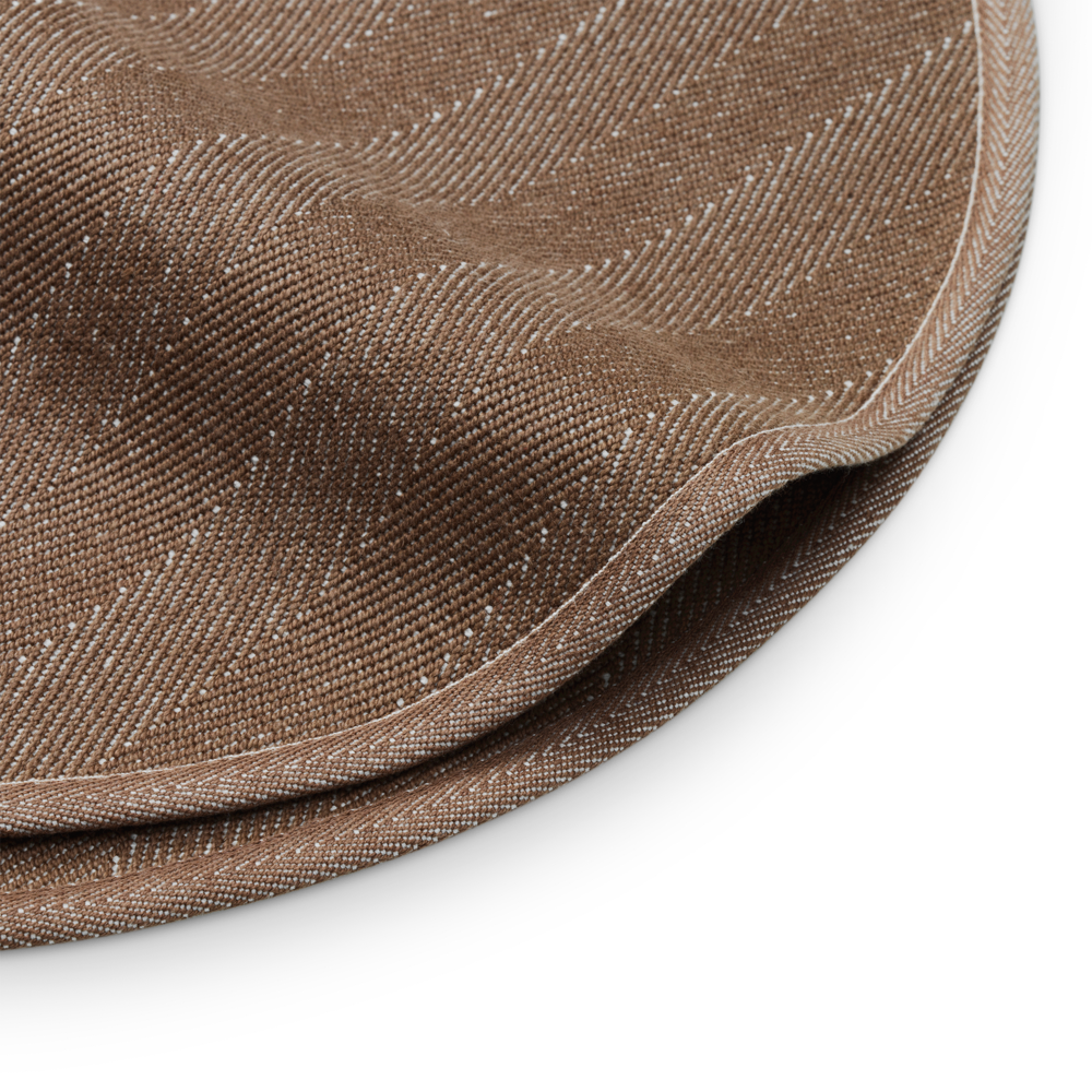 Herringbone er er en kraftig sildebensvævet dækkeserviet i 100 % bomuld. Her i en rund variant, der ligger godt på bordet og har et lille broderet Georg Jensen Damask-logo. Den nøddebrune farve Walnut er en efterårsklassiker, der går igen på tværs af Georg Jensen Damasks kollektion.