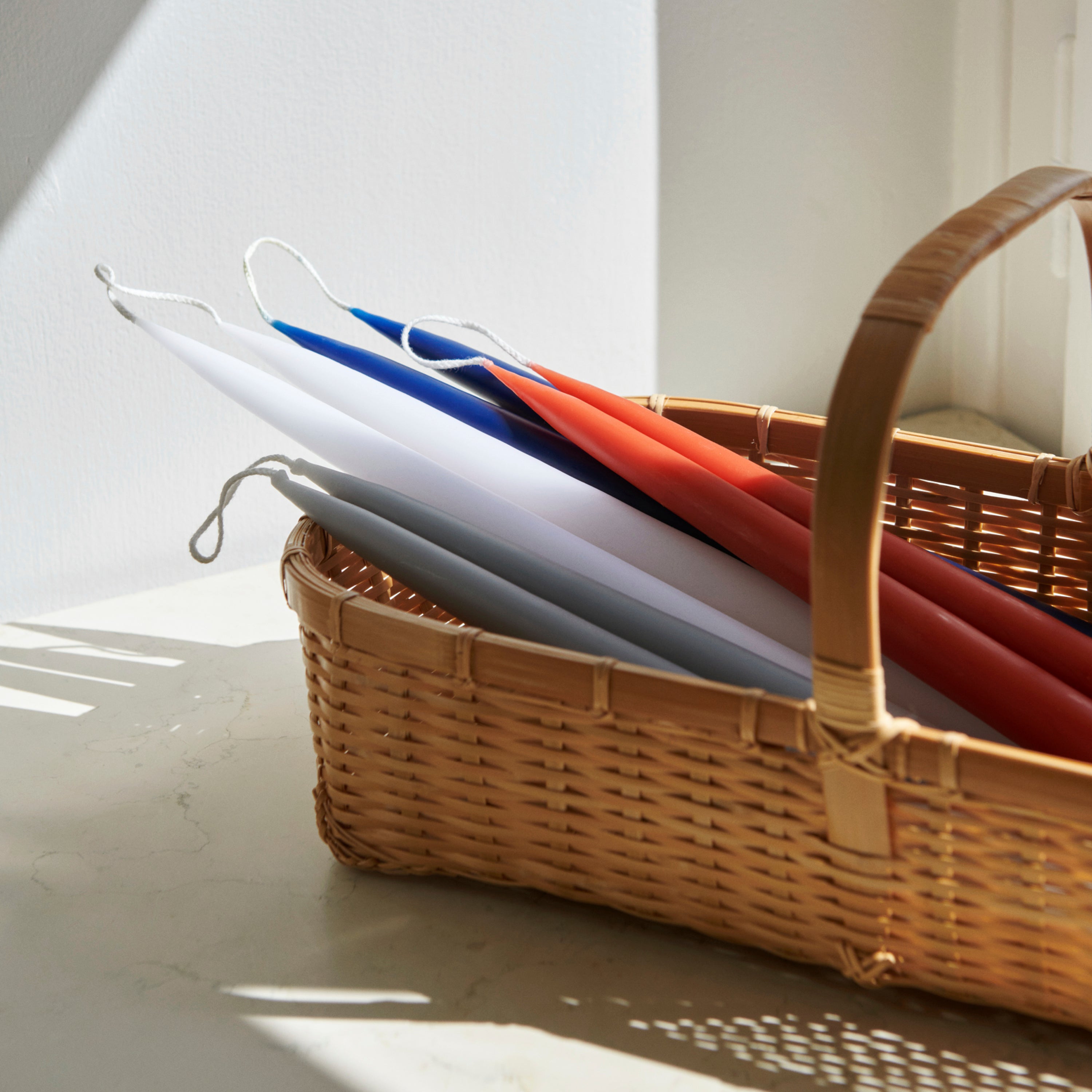 Lysene er hånddyppede, gennemfarvede og fremstillet i 100 % fuldraffineret paraffin af bedste kvalitet. Hvert lys måler 35 cm og har en brændetid på 15 timer.