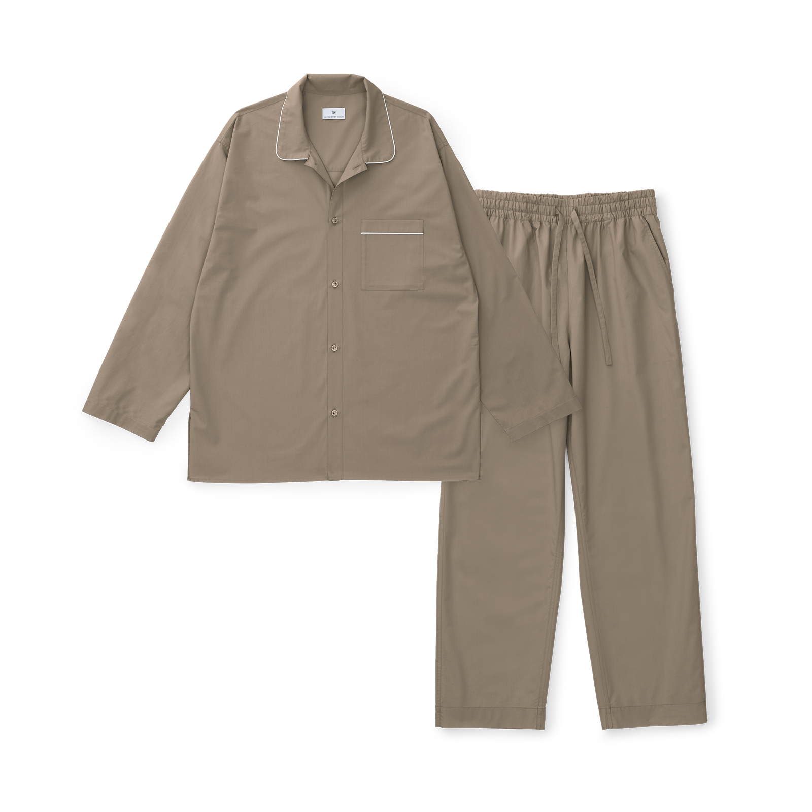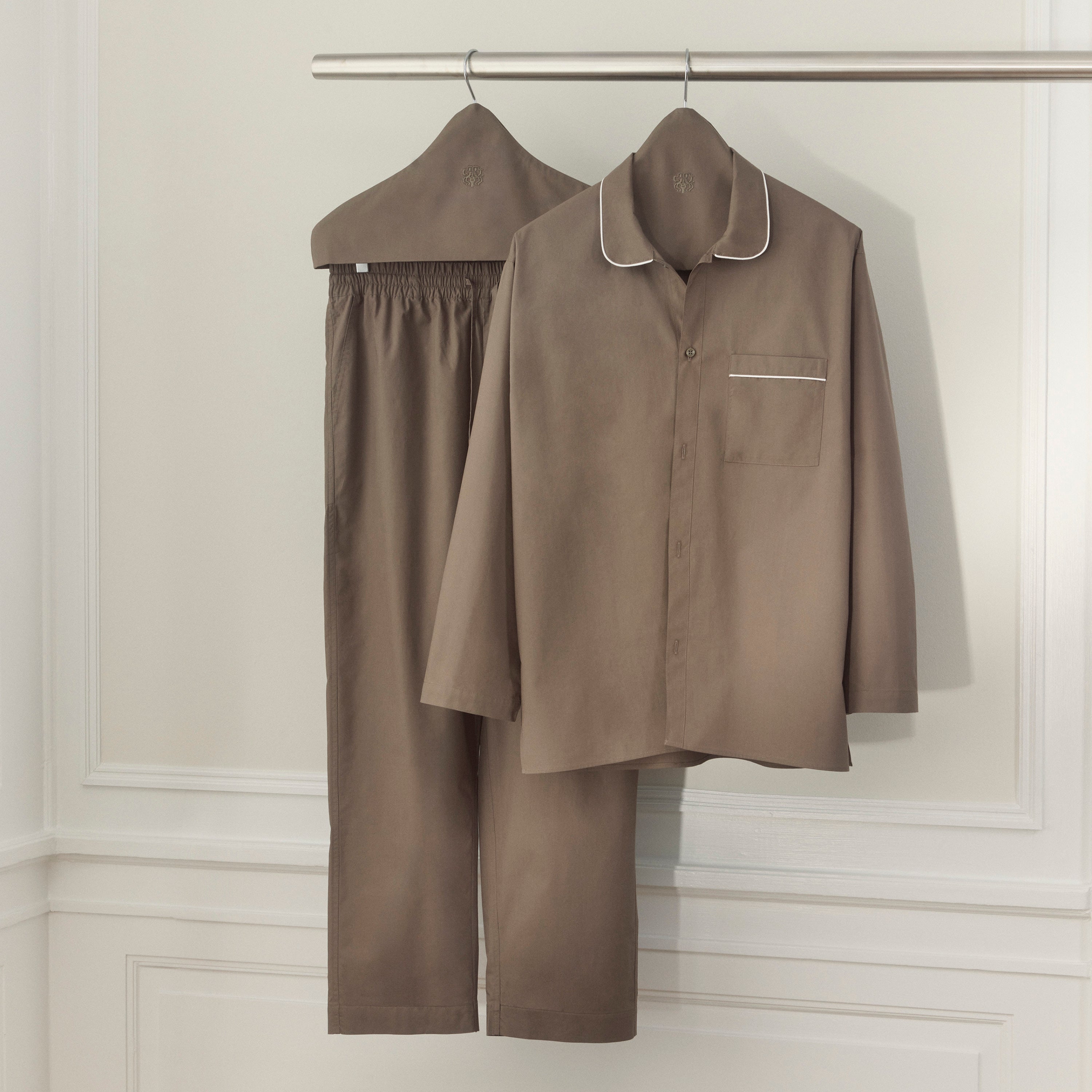 Unisex pyjamas percalevævet i supimabomuld. Pyjamassen har et klassisk snit og elegante, hvide pipings. Walnut er en dyb, nøddebrun farve.