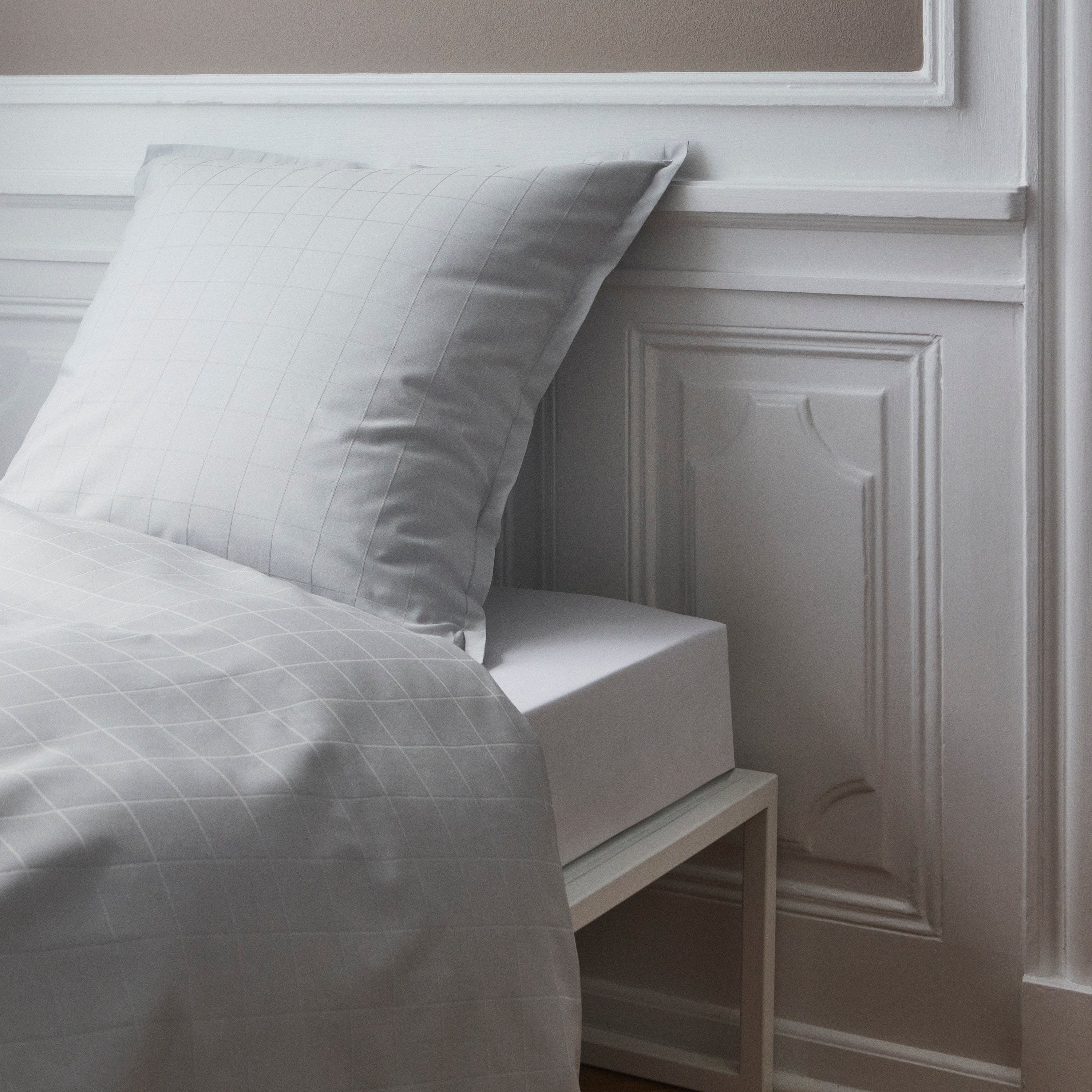 Light Squares sengetøj med et let grafisk mønster, der fremhæves i den fine satinvævning. Light Squares er vævet i 100 % kæmmet bomuld, der giver en stærk og blød overflade. Den lyse, grå farve, Frost Grey, giver sengetøjet et elegant udtryk.