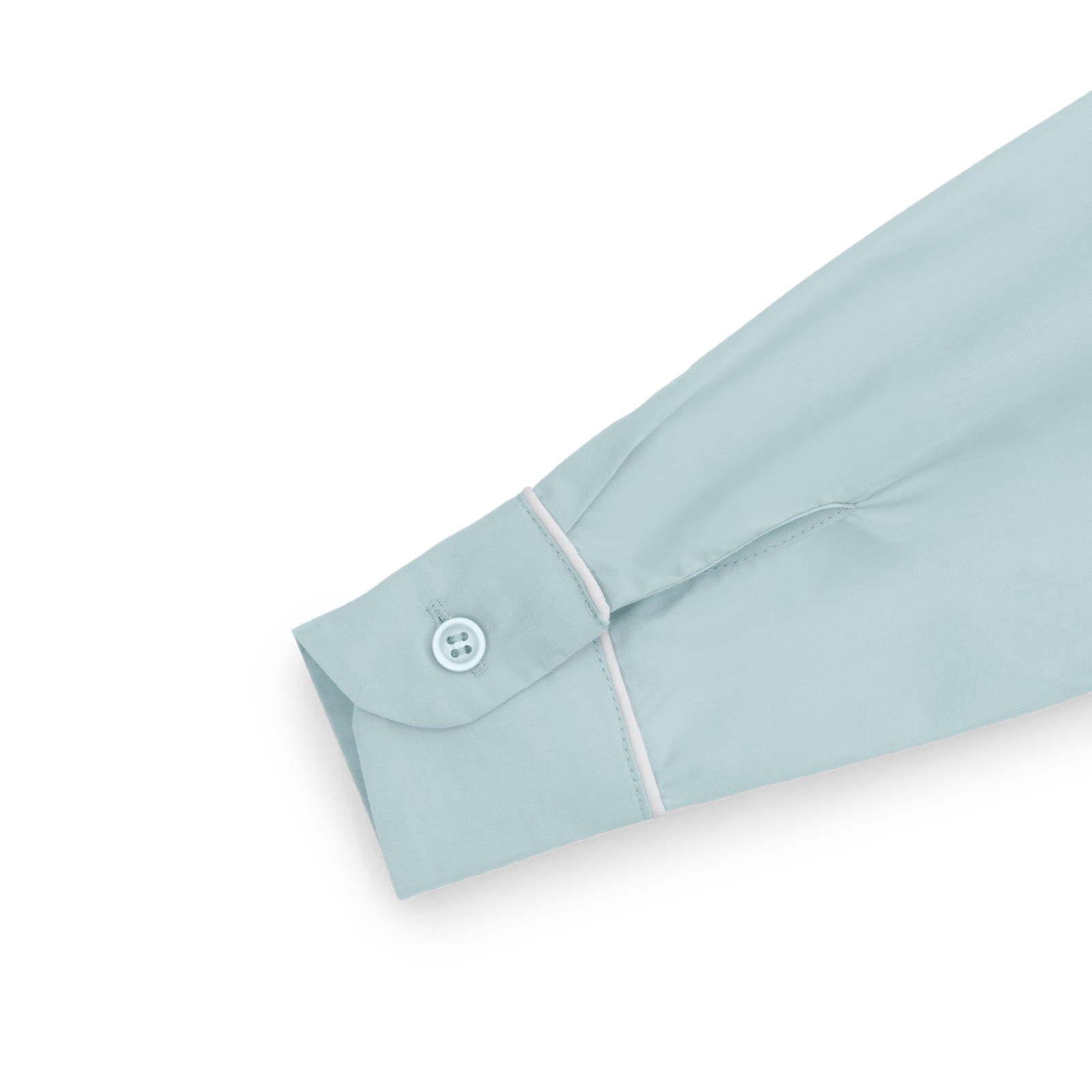 Skjortekjole til børn percalevævet i supimabomuld. Minimal Blue er en helt let variant af lyseblå med et strejf af aquanuancer.