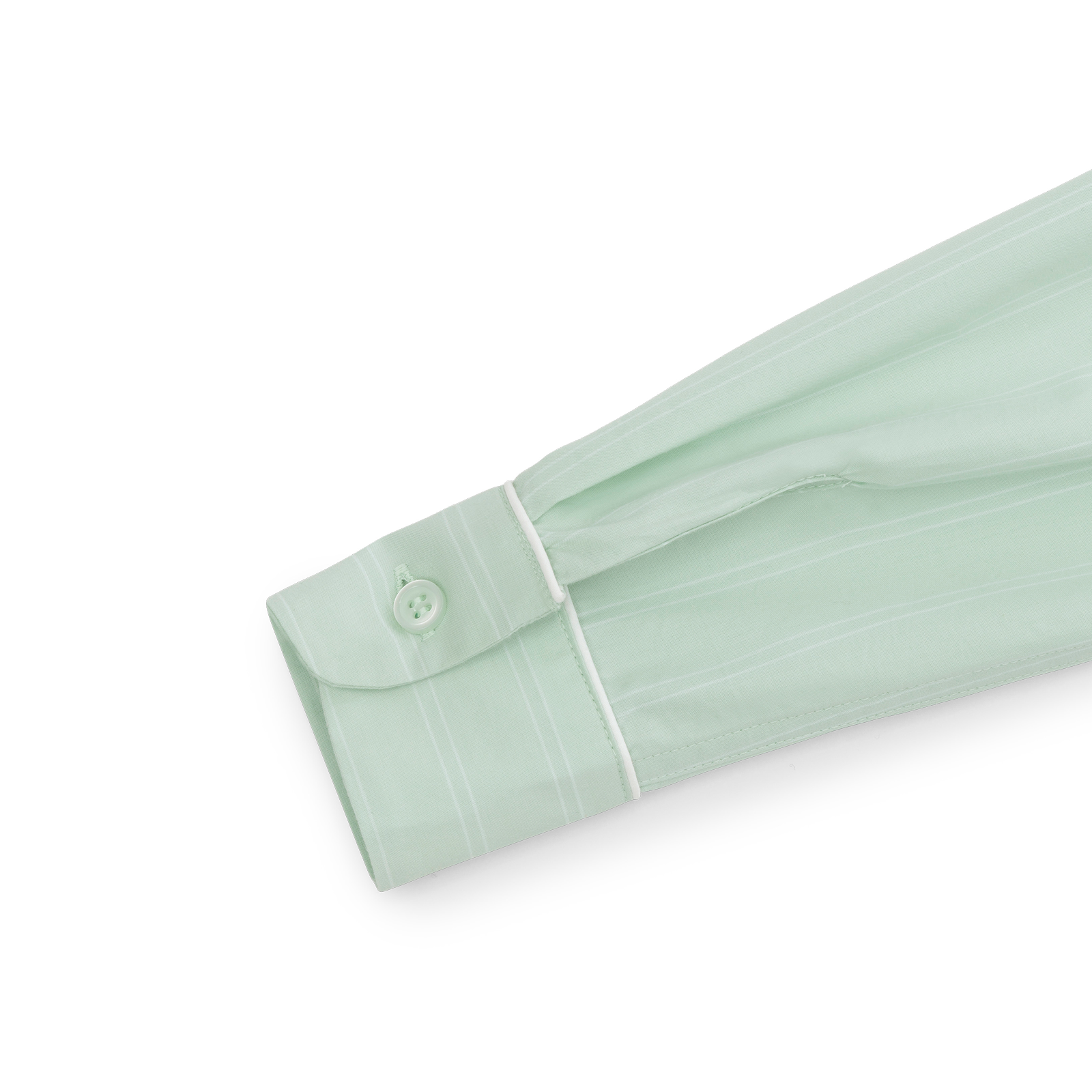 Skjortekjole til børn percalevævet i supimabomuld. Skjortekjolen har et klassisk snit, elegante, hvide pipings og slanke nålestriber med en baggrund i farven Glass Green - en klar, grønblå nuance, der er inspireret af farven på råglas.