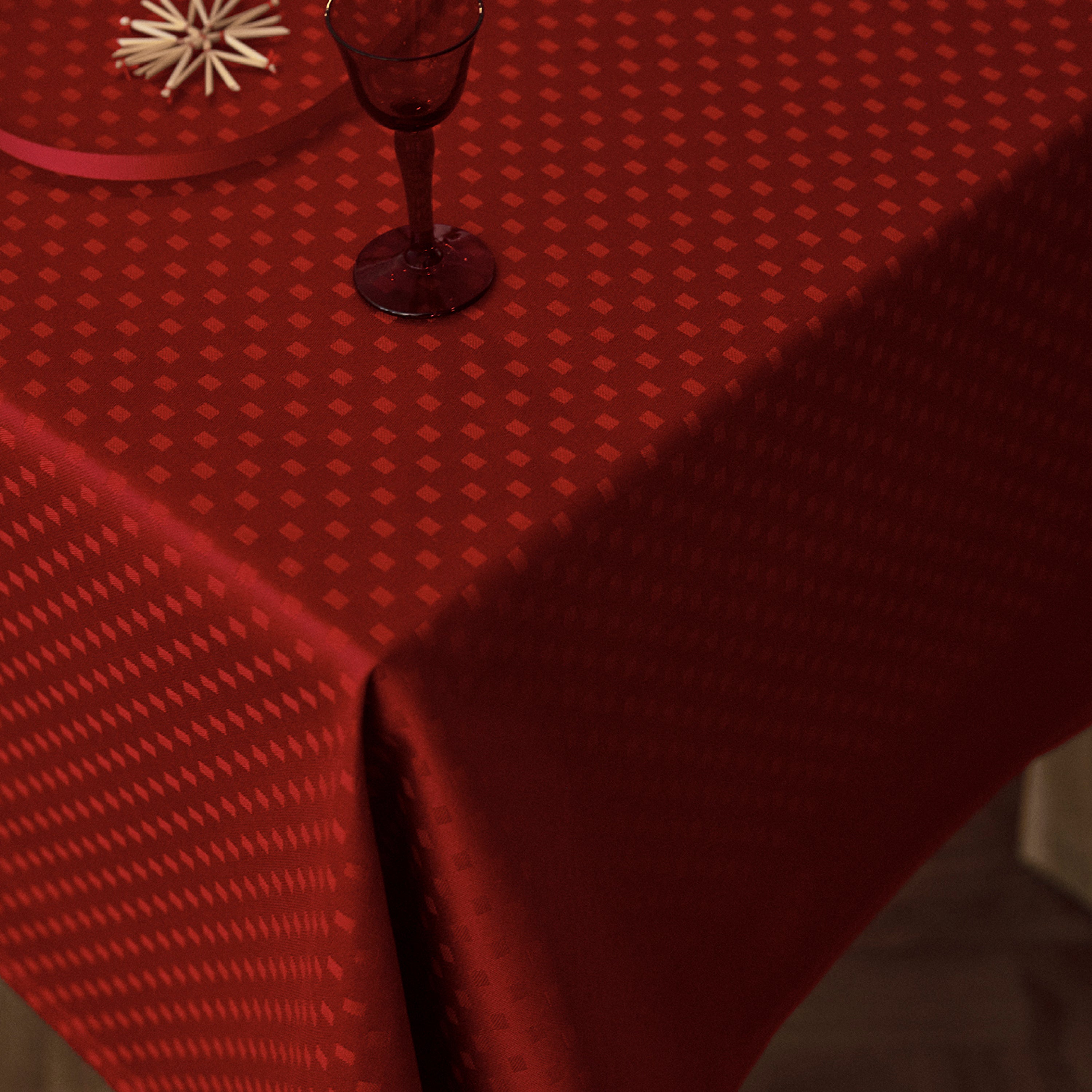 Snefnugs enkle design gør det muligt at bruge dugen til jul og ved andre festlige lejligheder året rundt. Damaskdugen er vævet i 100 % dobbelttvundet kæmmet bomuld.