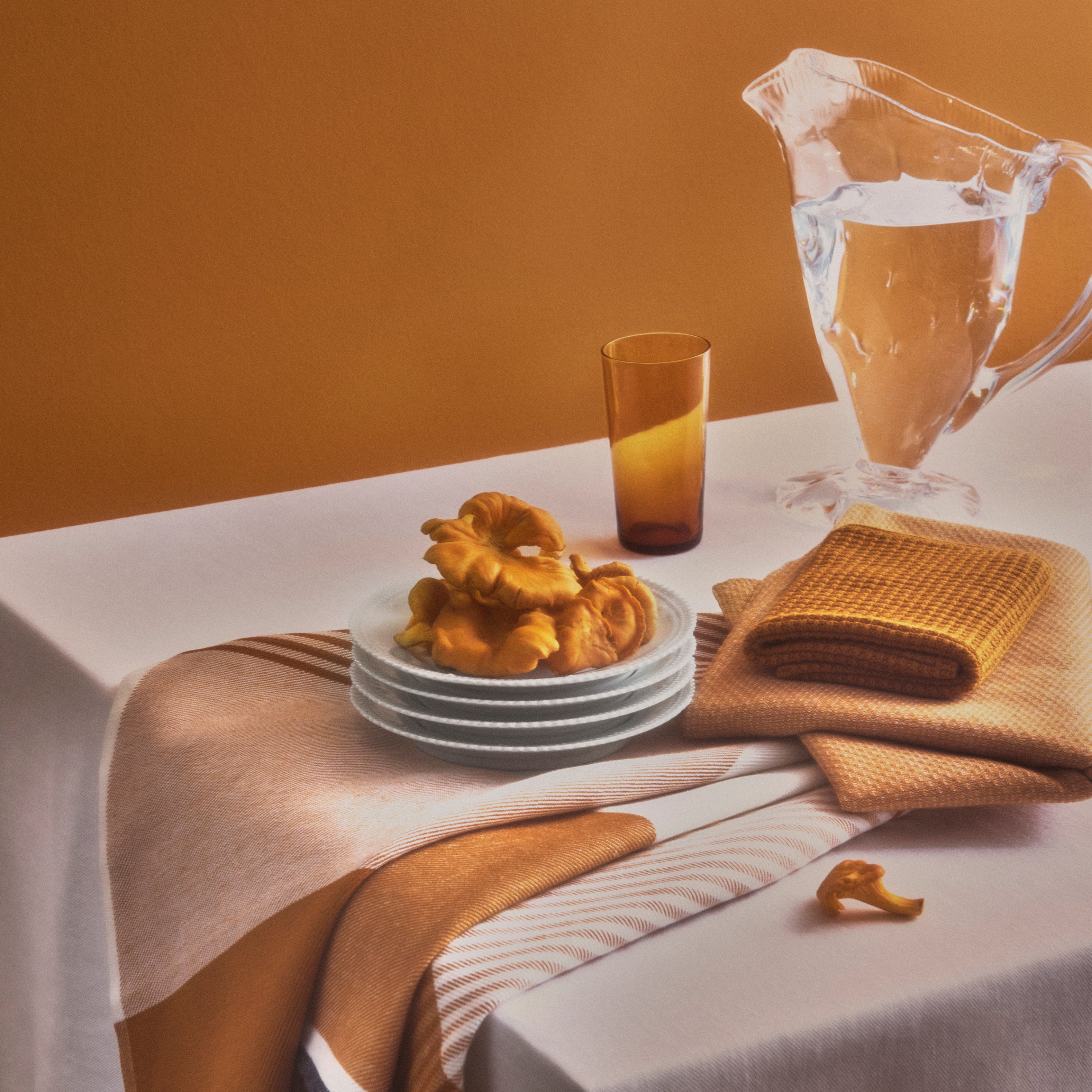 Becker 63 er et klassisk viskestykke med tern, skabt af felter i varierende bredder og farver. Det er vævet i en kombination af 50 % hør og 50 % bomuld, der giver optimale tørreegenskaber. Chanterelle er en dyb orange med undertoner af karamel, inspireret af kantarellens smukke nuancer.