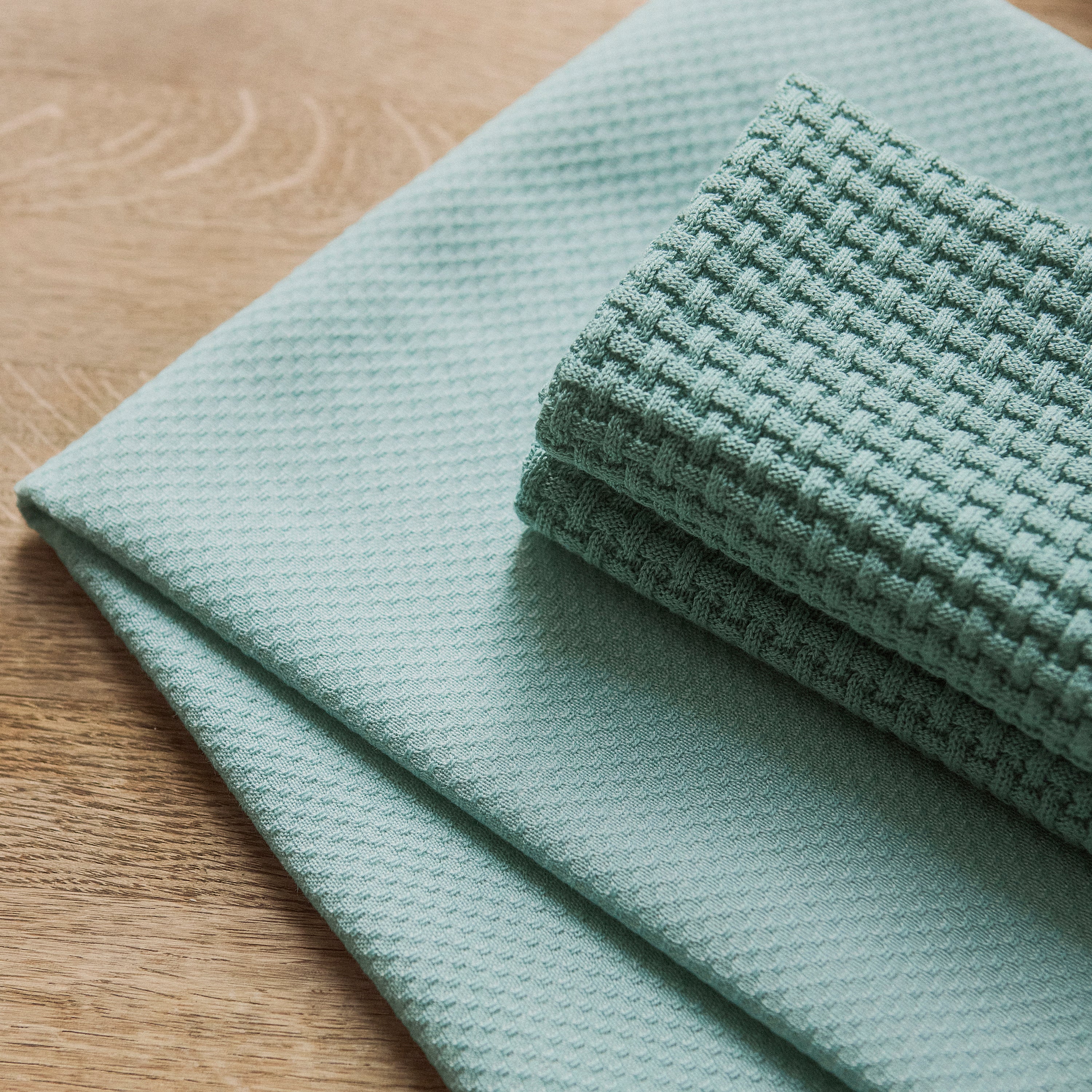 1959 är en klassisk vävd kökshandduk i mjuk bomull. Kökshanddukens speciella våfflade struktur ger optimala torkegenskaper och den kraftiga kvaliteten gör att den kan användas som både handduk och diskhandduk. Den klara blågröna färgen Deep Glass är inspirerad av färgen på råglas.