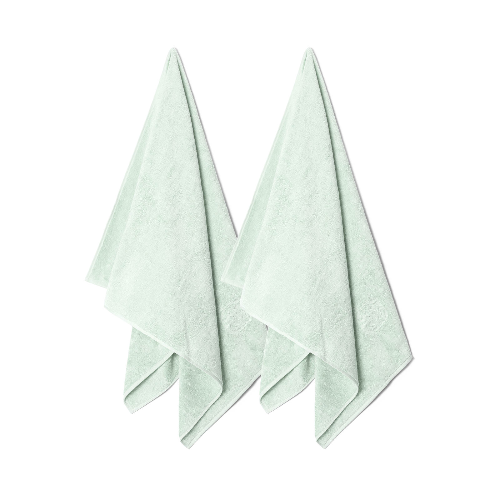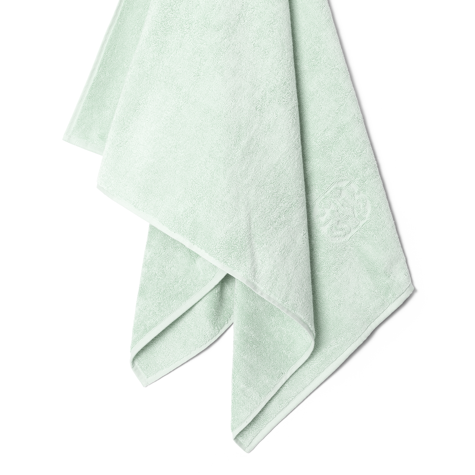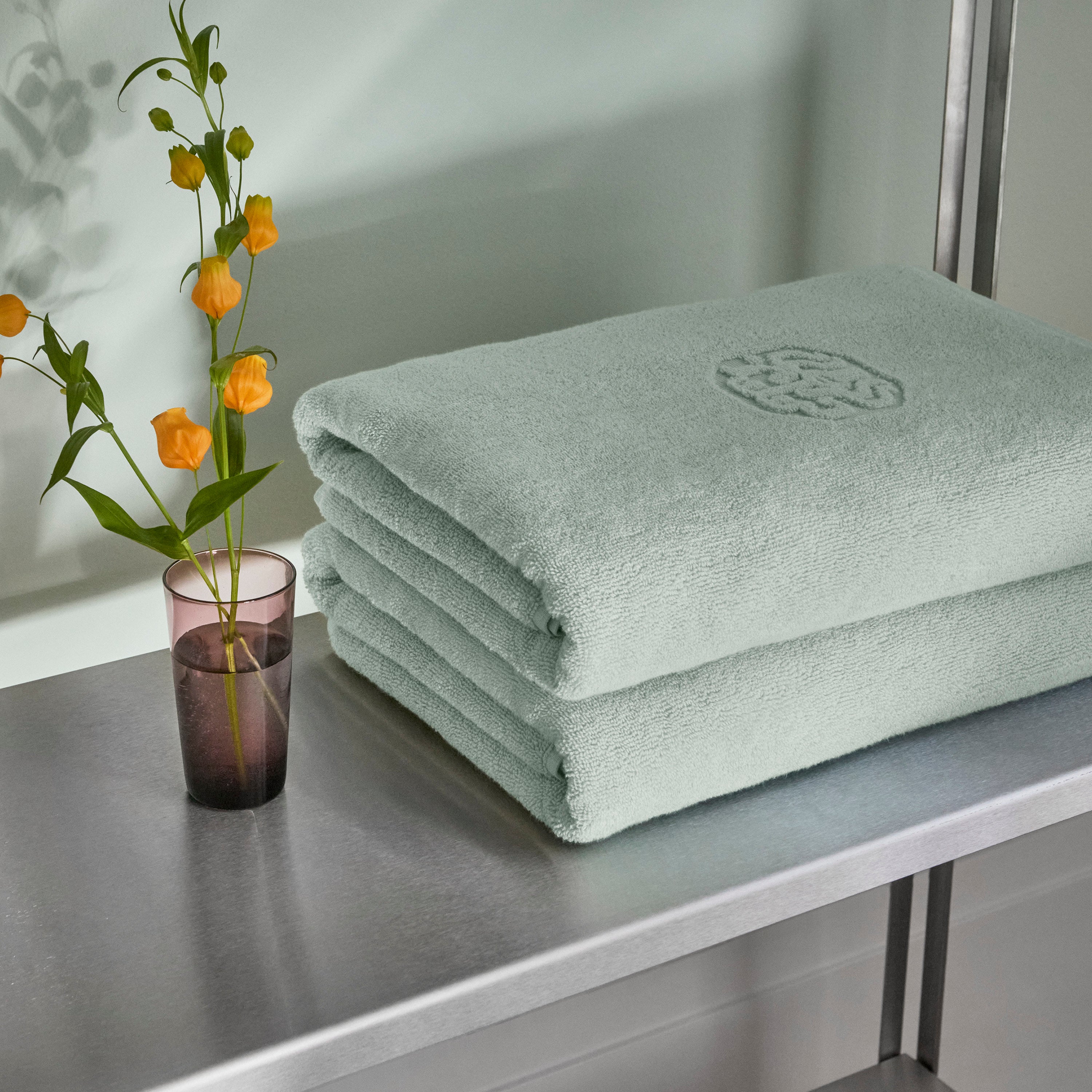 Paket med 2 Damask Terry badhanddukar i färgen Glass Green – en grönblå nyans inspirerad av råglasets färg.
