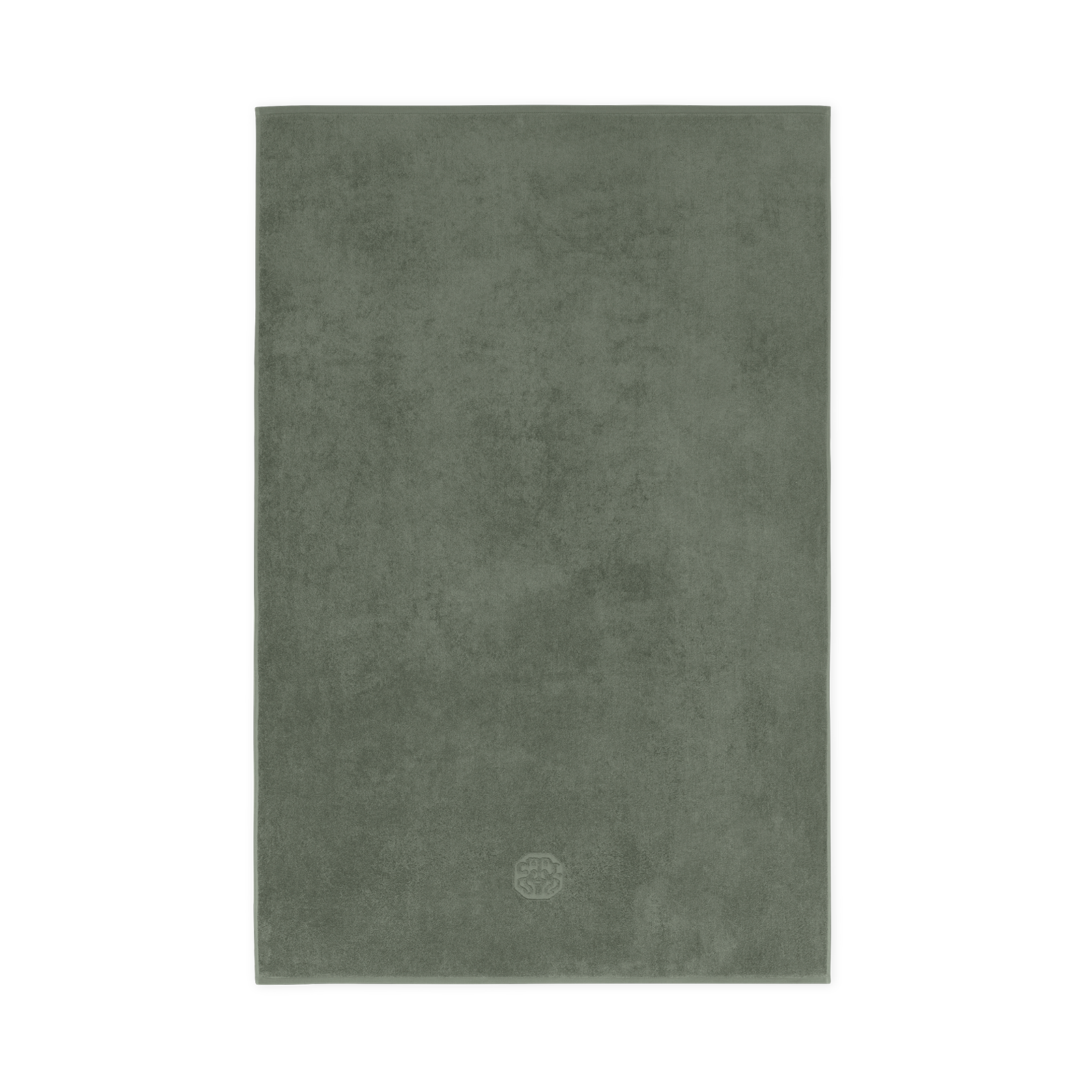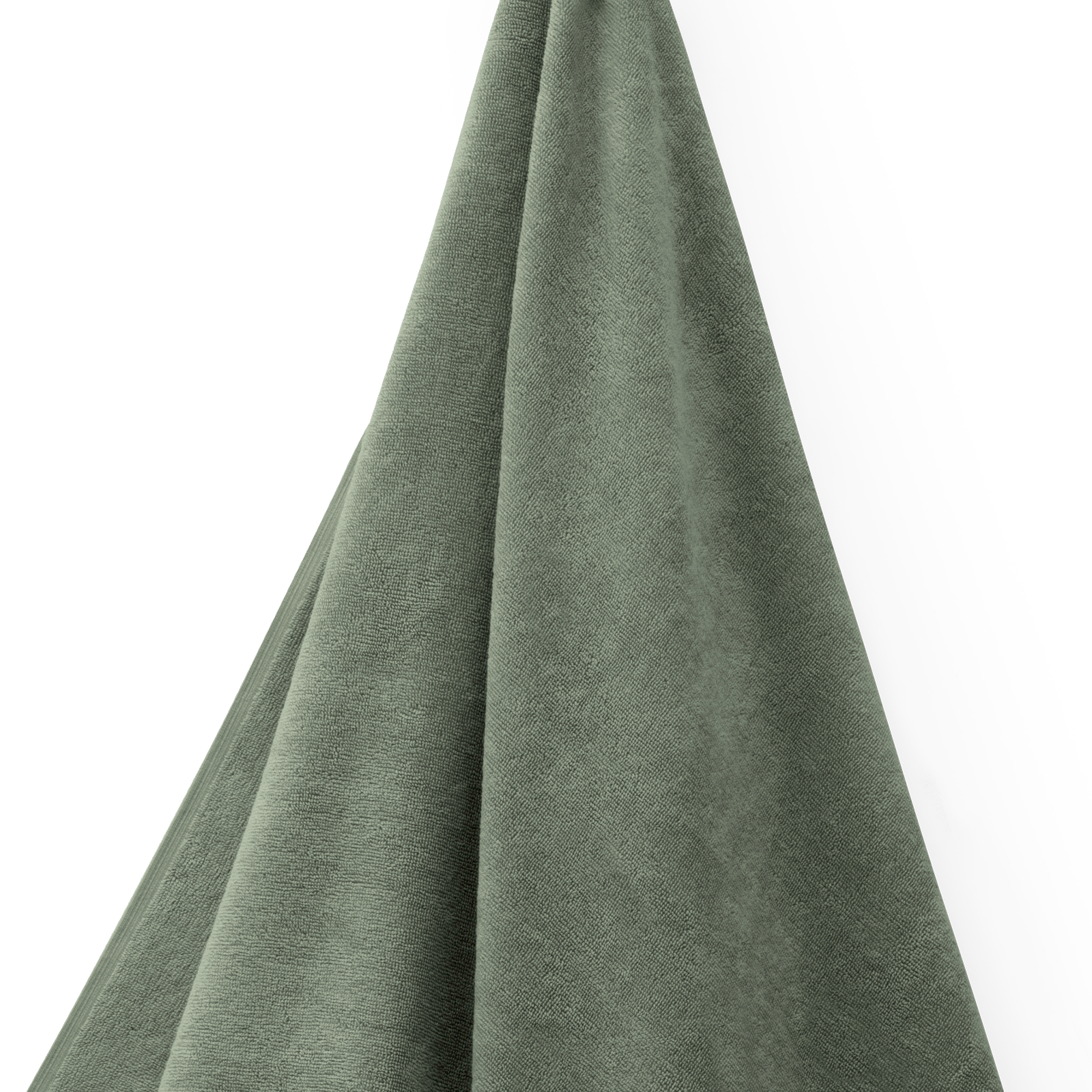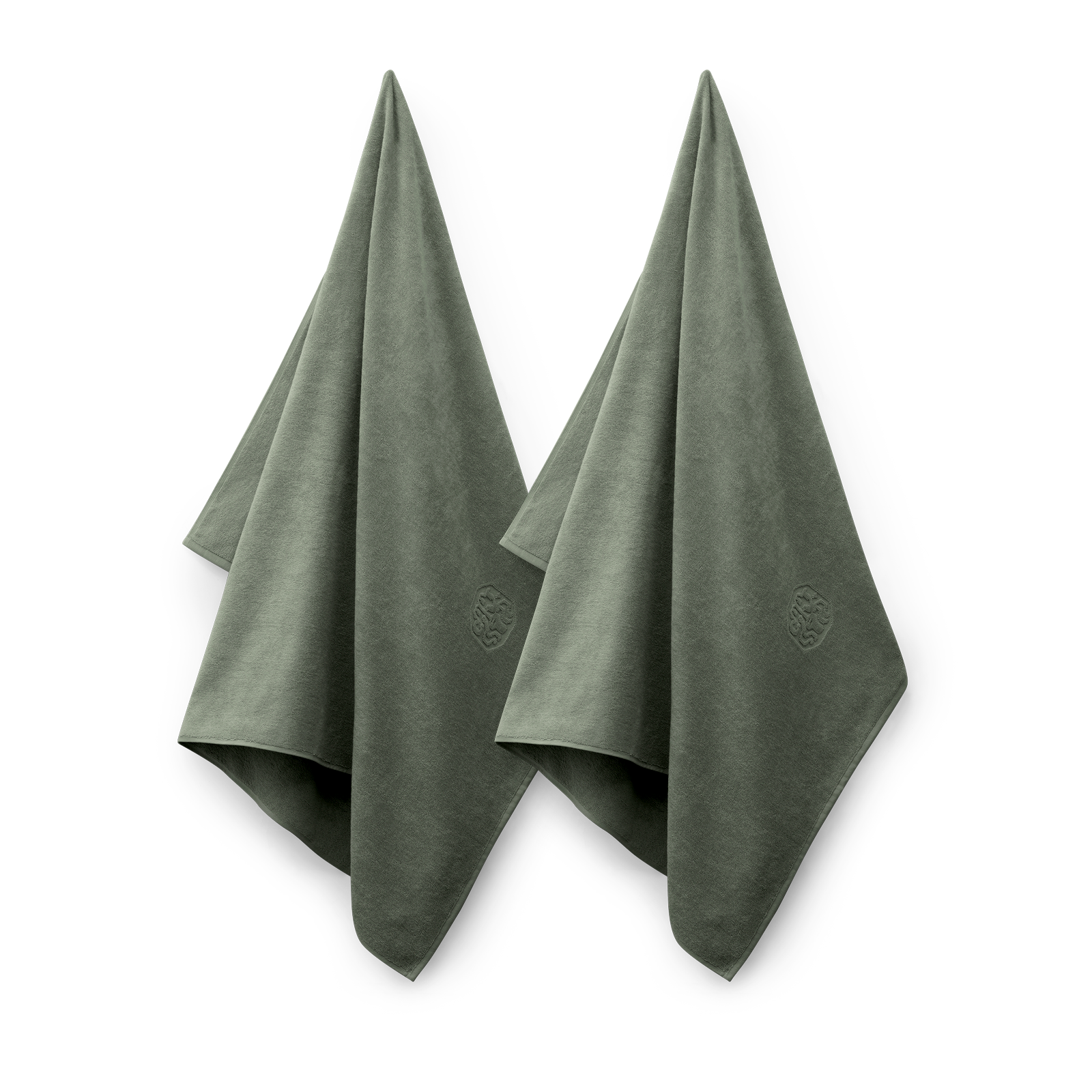 Förpackning med två Damask Terry badlakan i färgen Mineral Green – en vacker, dämpad grön nyans.