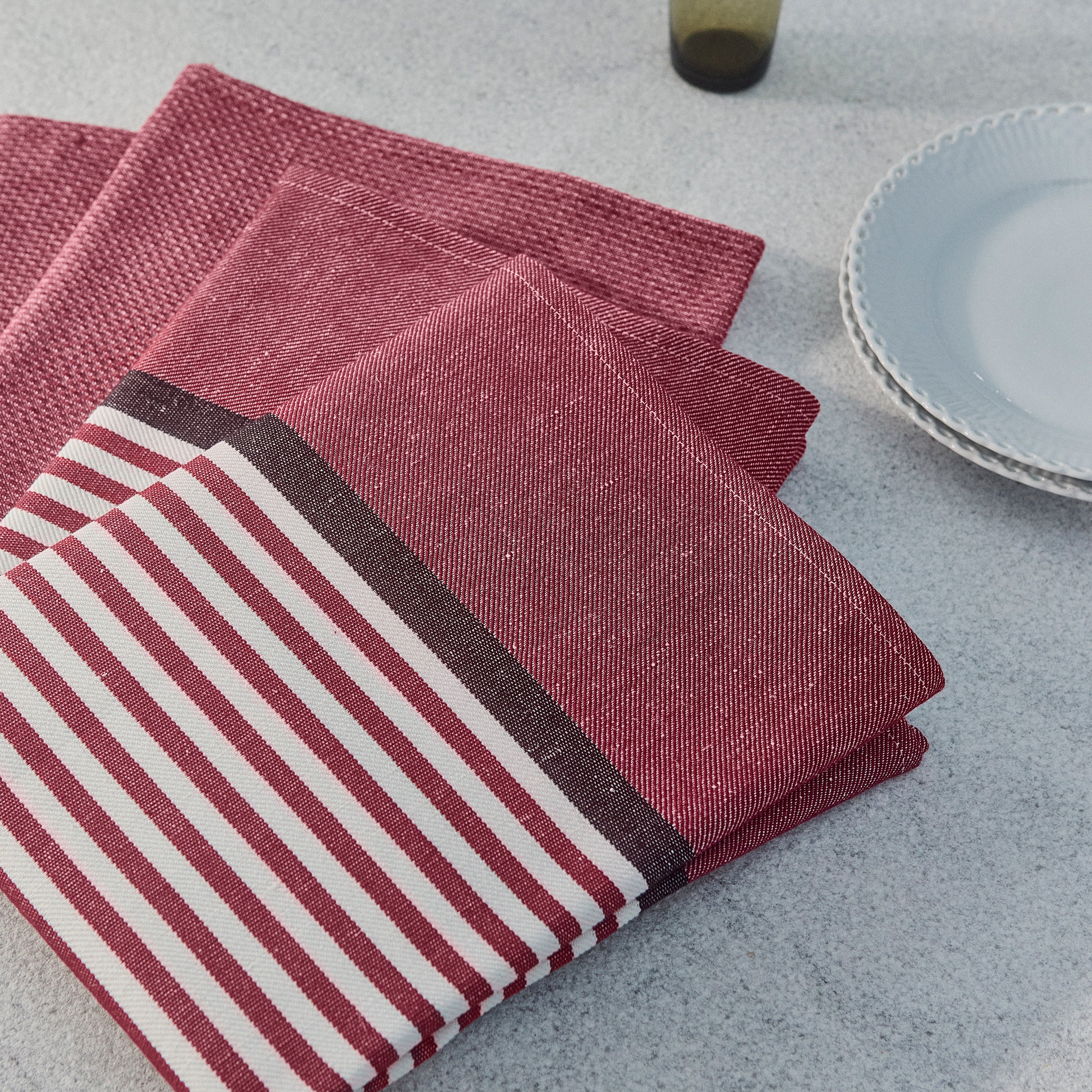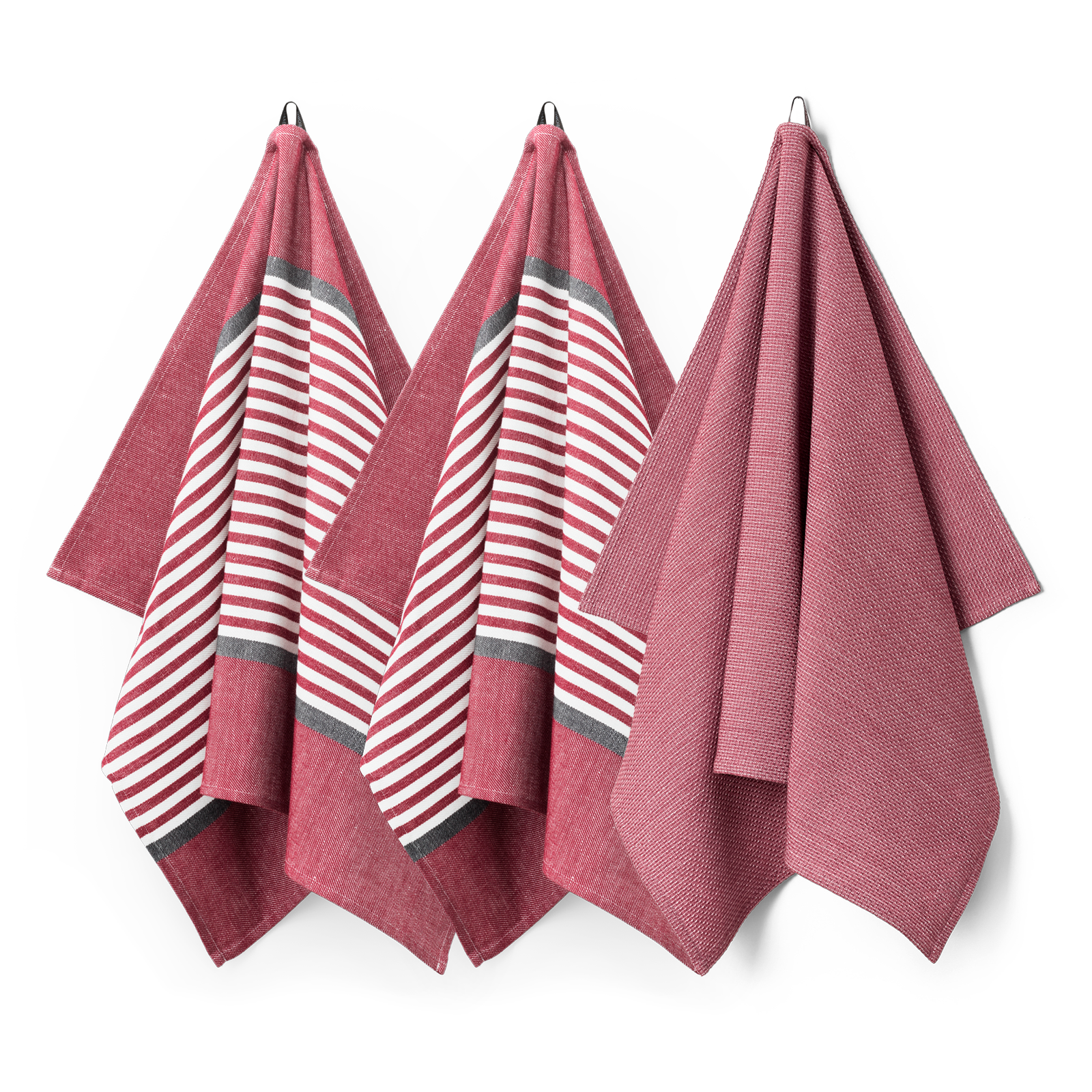 Köksset med 2 Abild diskhanddukar och 1 1959 kökshandduk i Carmine Red – ett djupt och distinkt rött med en kall underton.