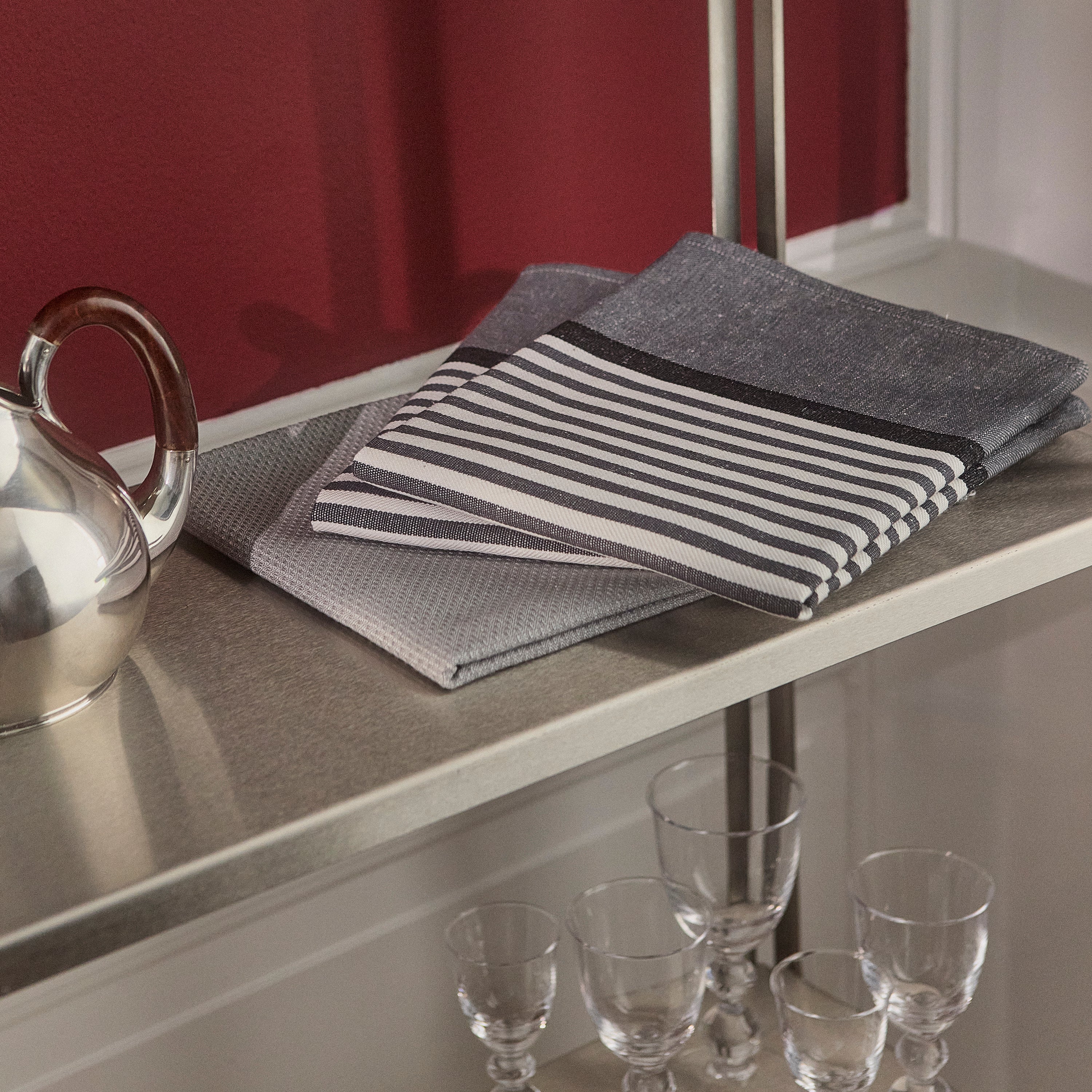 En klassisk diskhandduk med harmoniska ränder som bärande designelement. Vävd i en kraftig lin- och bomullsblandning som ger optimala torkegenskaper.
