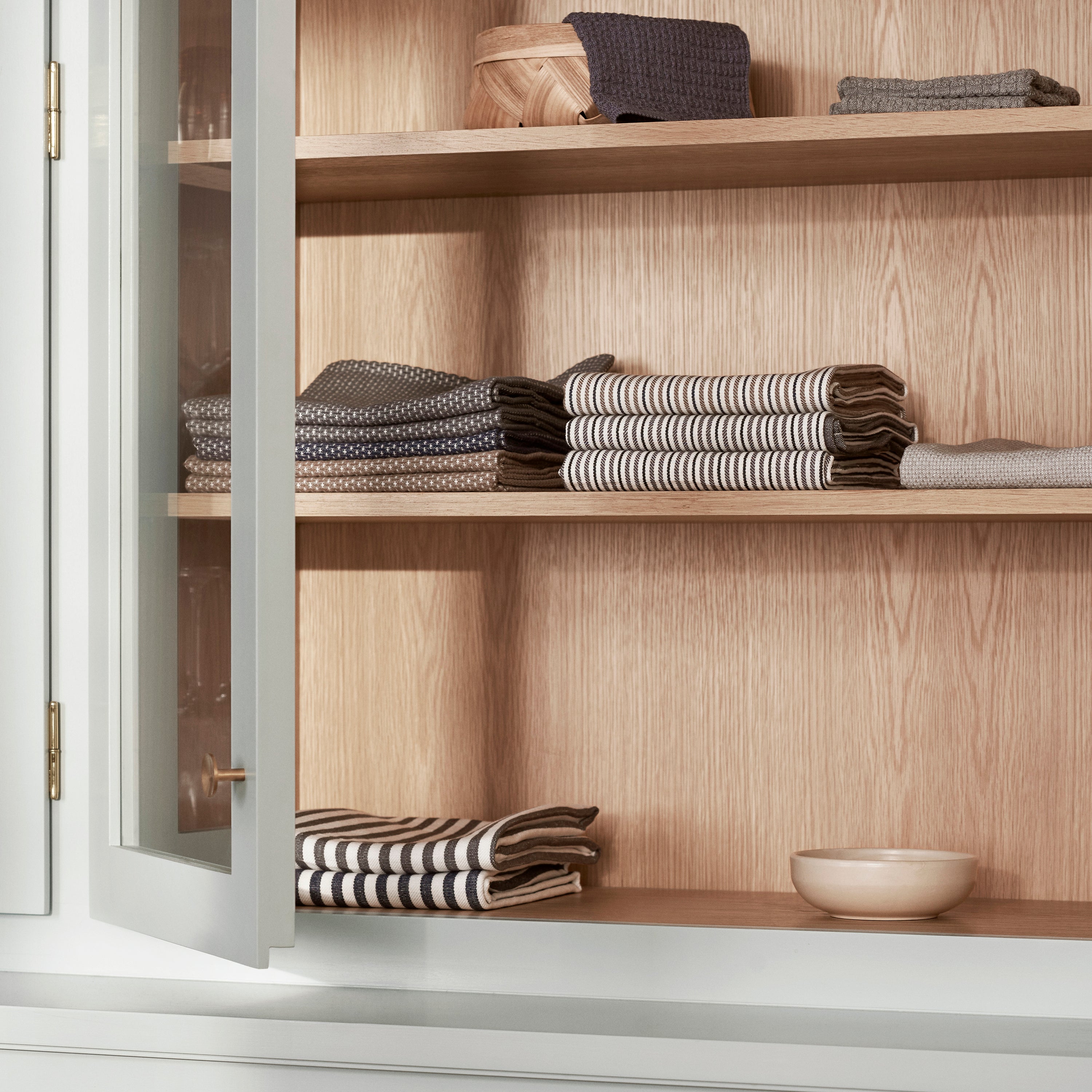 I färgen Flint får man ett nästan dramatiskt uttryck, där ränderna träder fram klart på den eleganta, mörkgrå bakgrunden, som är både praktisk och vacker i köket.