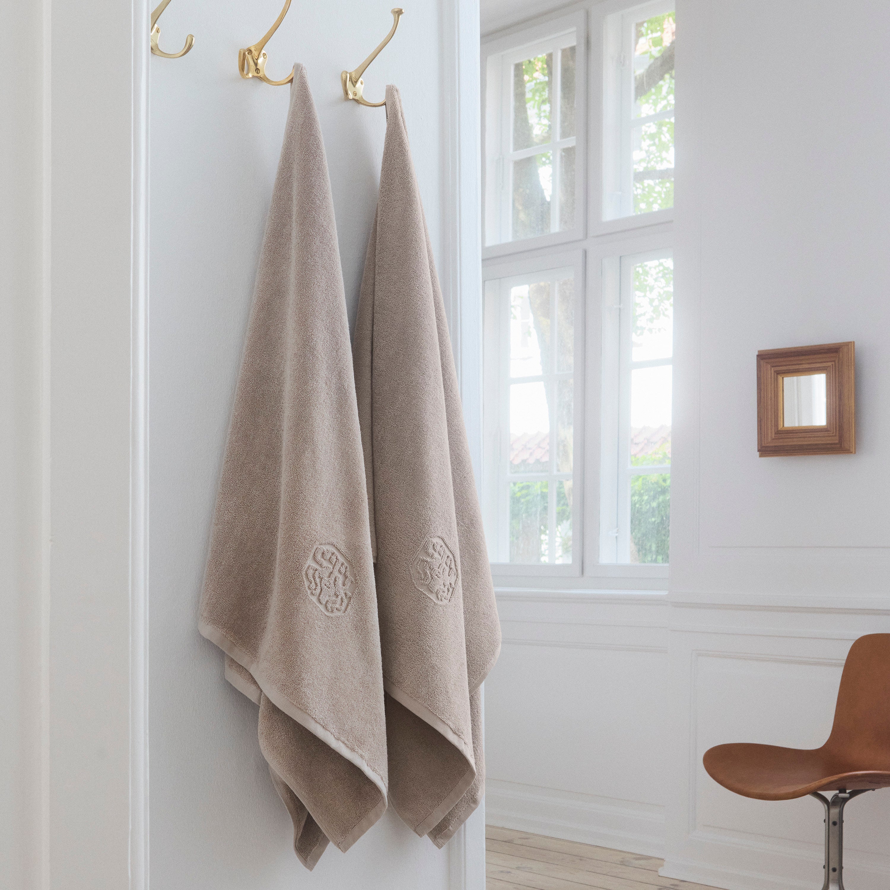Damask Terry badhandduken har ett enkelt uttryck med Georg Jensen Damasks ikoniska logotyp invävd som en elegant detalj. Cashmere är en diskret, brunaktig grå nyans med ett lugnt och exklusivt uttryck. Den är inspirerad av råfärgen på kashmirull.