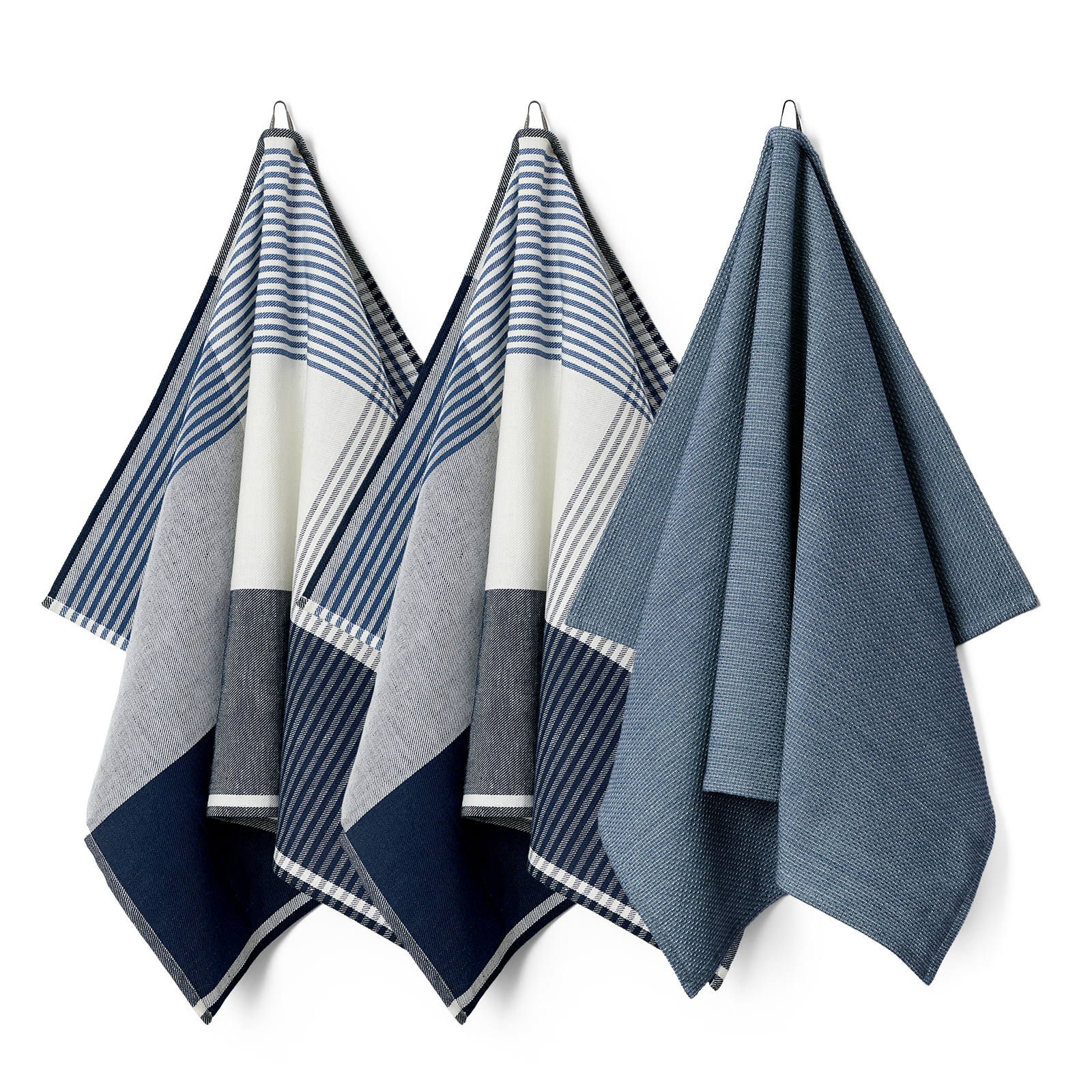 Köksset med 2 Becker 63 diskhanddukar och 1 1959 kökshandduk i färgen Dark Blue – en klassisk, mörk nyans av blått.