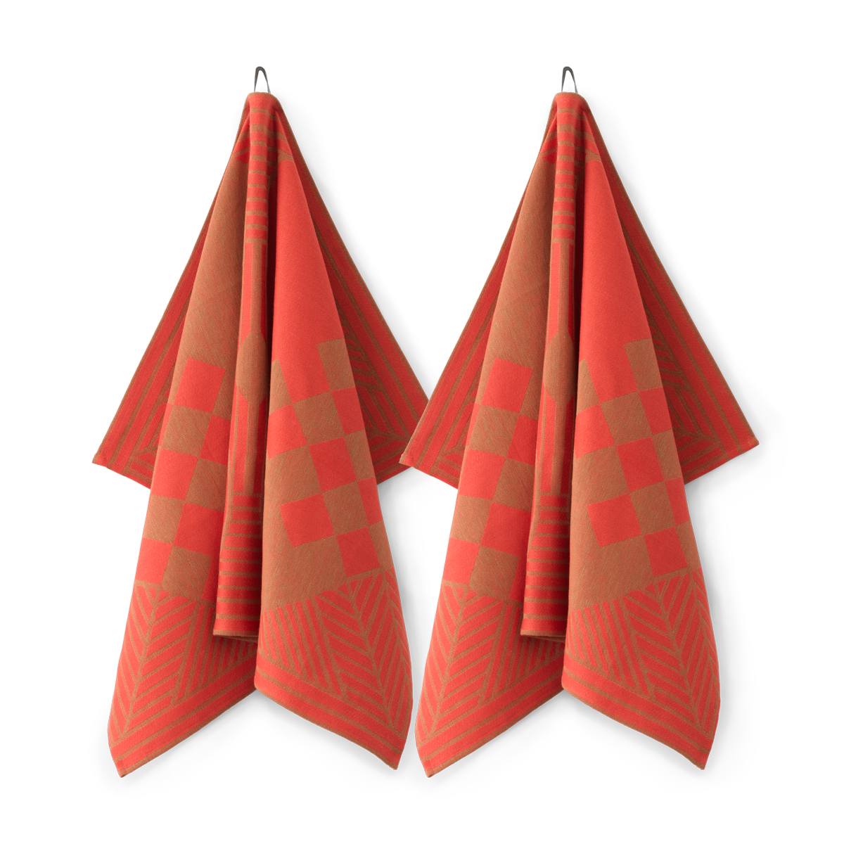 Christmas-diskhanddukens klassiska julmotiv med flätade julhjärtan och stiliserade grankvistar för in julstämningen i köket. Kombinationen av linne och bomull ger diskhandduken optimal uppsugningsförmåga. Archive Red är en av de ursprungliga färgkombinationerna från 1975.