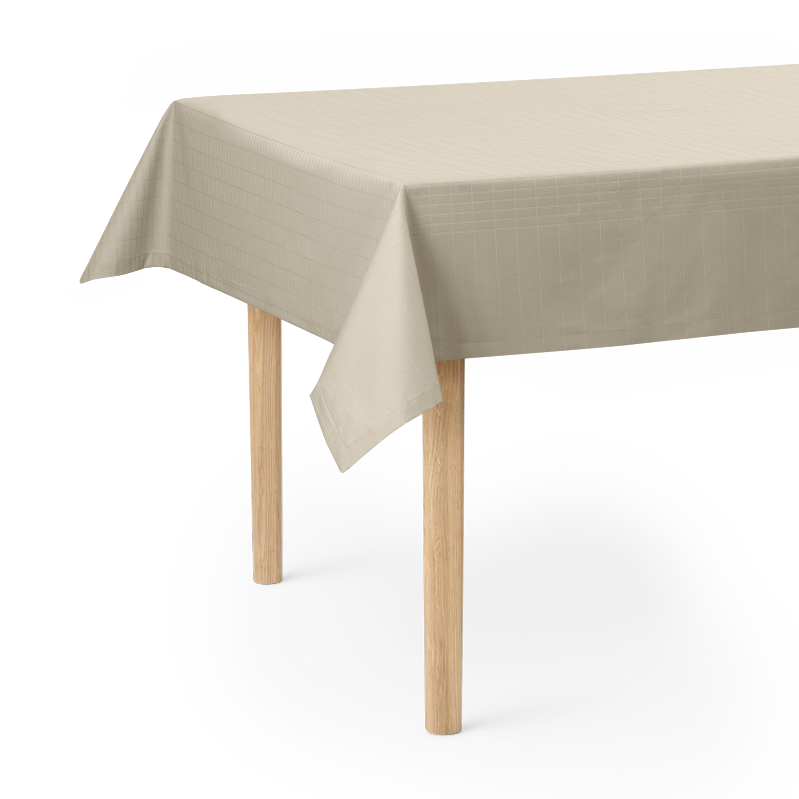 Classic Lines är en satinvävd duk i 100 % bomull med en belagd yta som gör den vatten- och smutsavvisande. Duken har ett enkelt uttryck med rena linjer tvärs över, vilket skapar ett elegant mönster med rektangulära rutor på bordsytan. Silver Sand är en varm grå ton.