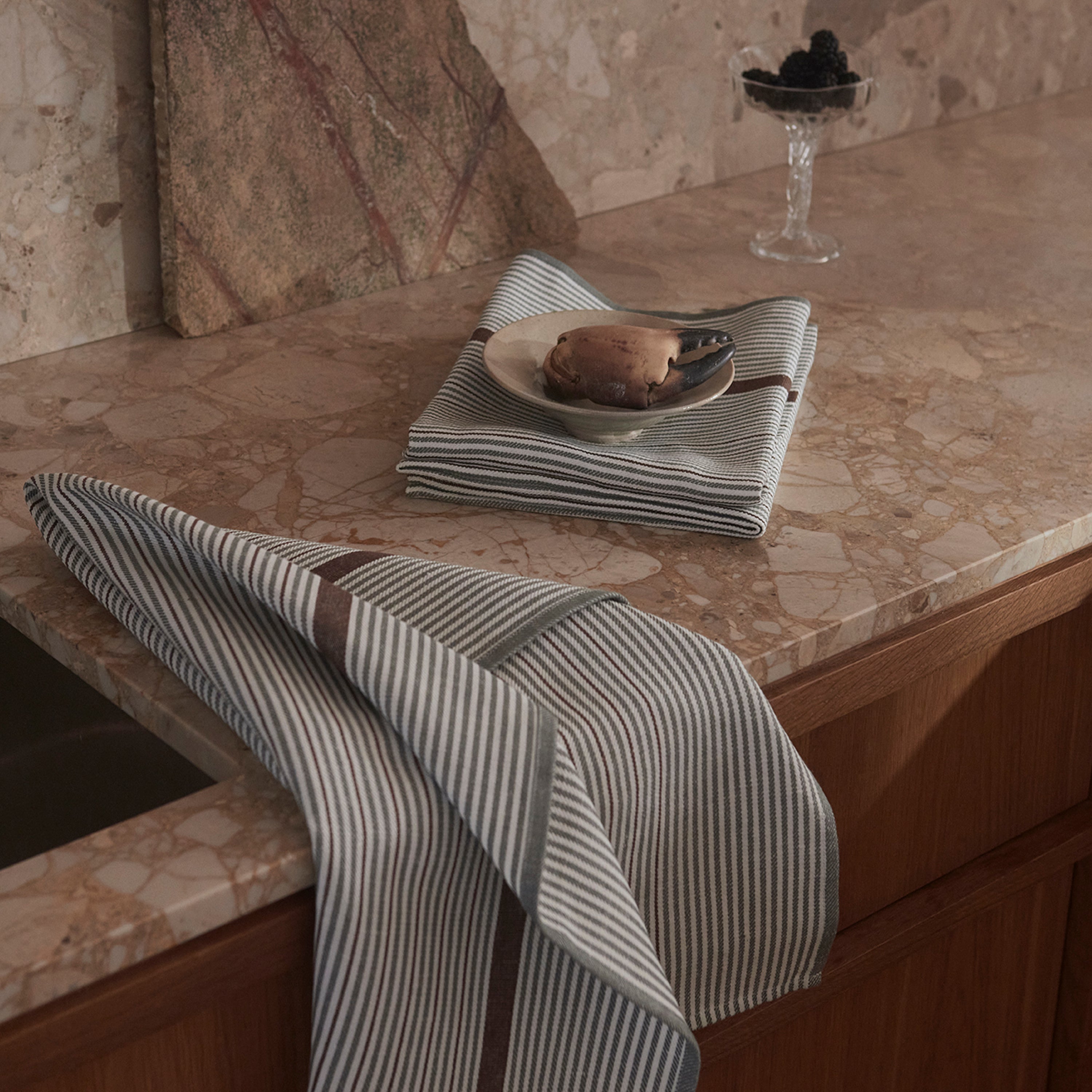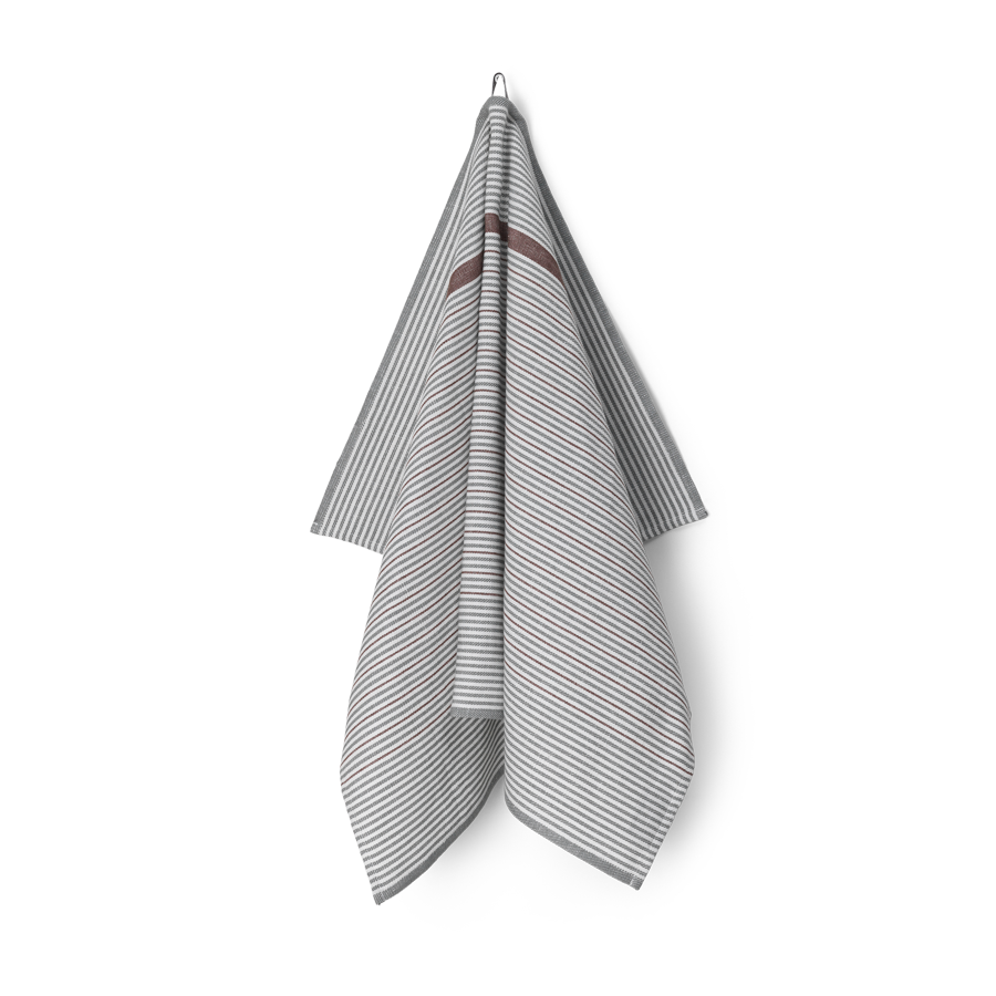 Comet är en tidlös randig diskhandduk designad 1979 av Bent Georg Jensen – här i den ljusgröna färgkombinationen Mineral Green. Diskhandduken är vävd i en blandning av bomull och linne som gör den perfekt att torka med.