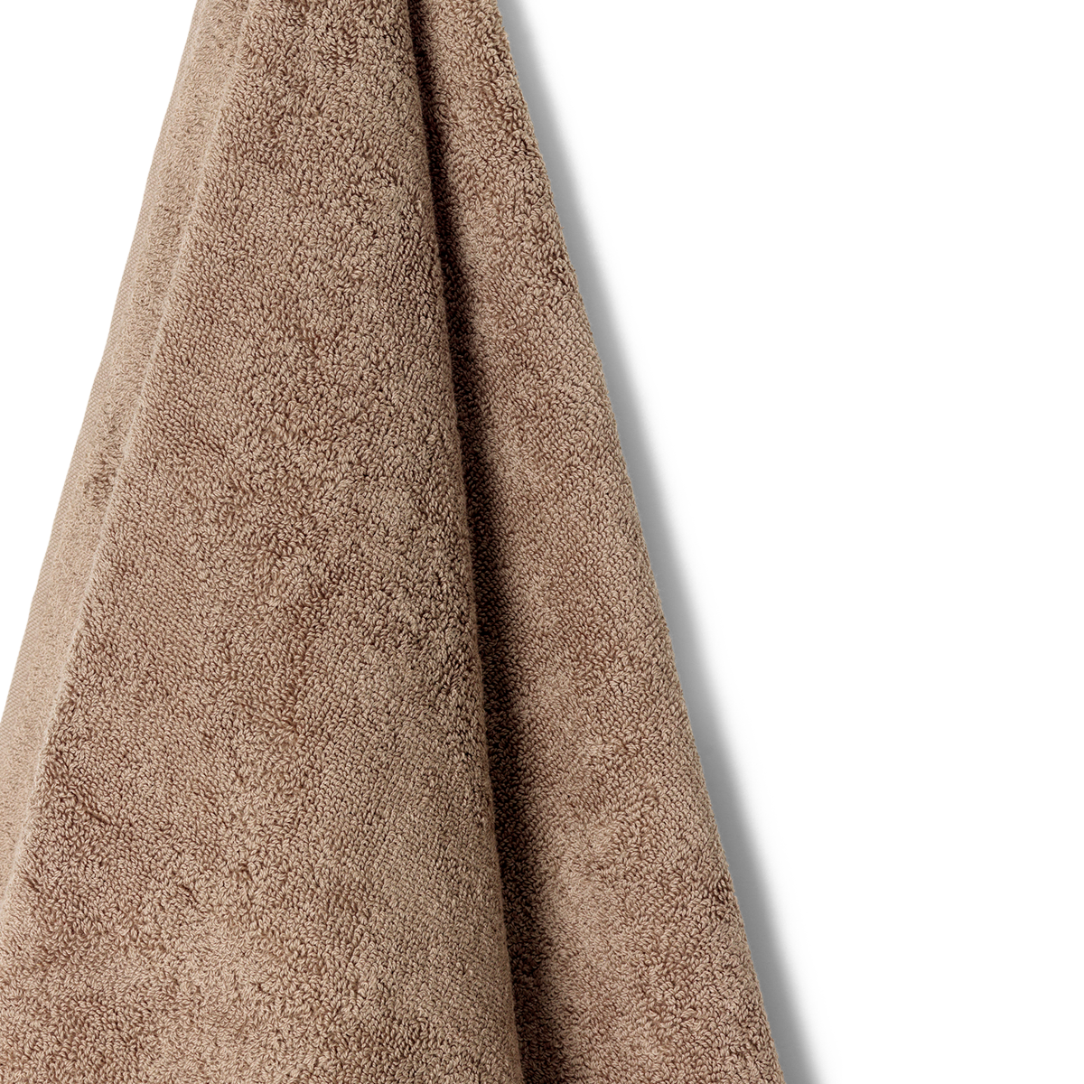 The bath towels nut brown hue directs the attention to nature’s own colours. The colour is as elegant together with any wood species as minimalist décor, where it contributes to a natural warmth and harmony. This gorgeous thick towel is fantastic comfort in everyday life and only improves with use.