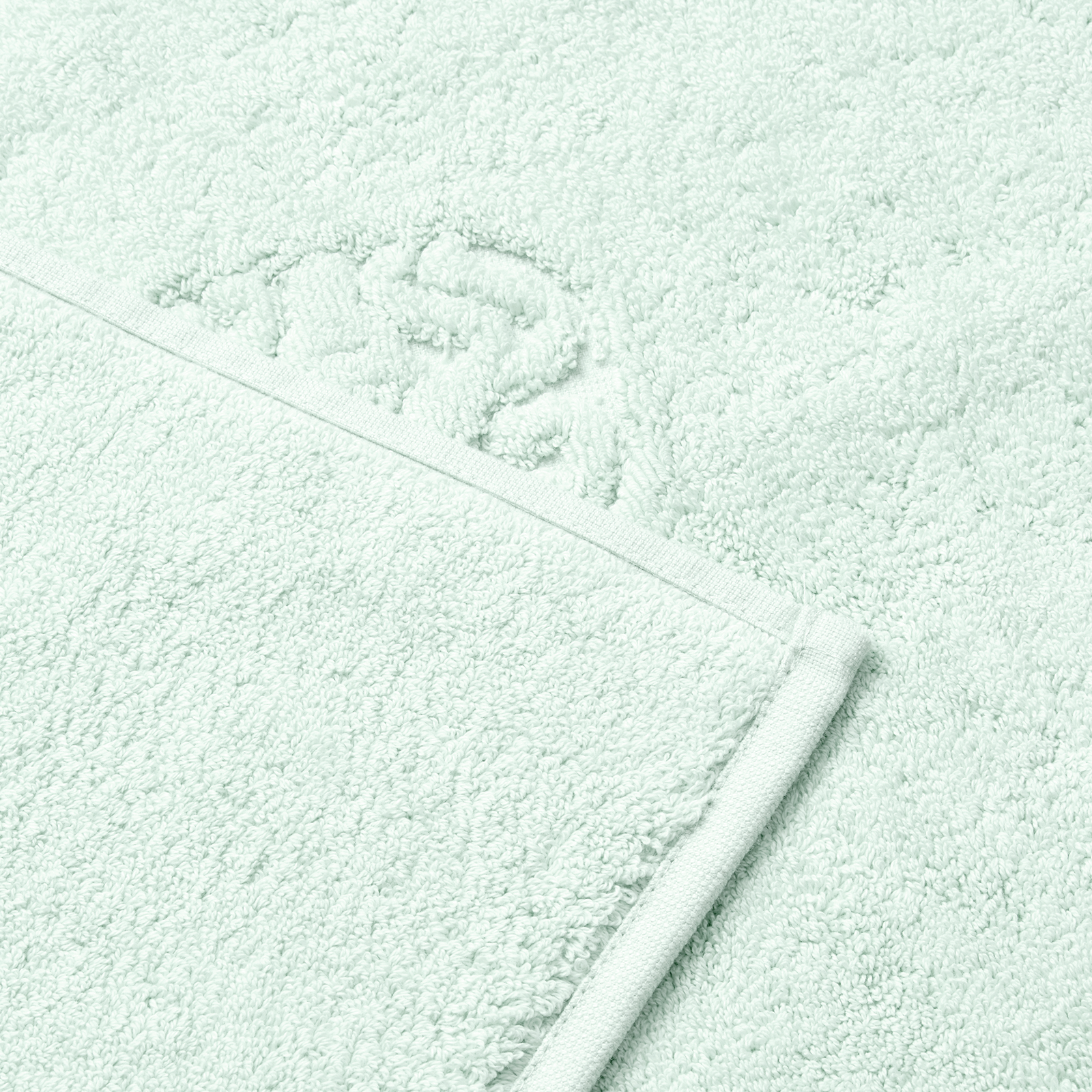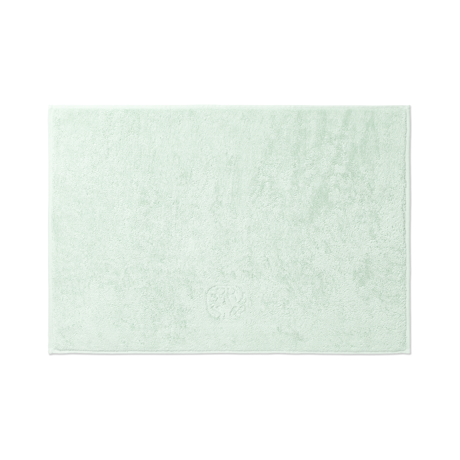 Damask Terry badmattan har ett enkelt uttryck med Georg Jensen Damasks ikoniska logotyp invävd som en elegant detalj. Den klara grönblå färgen, Glass Green, är inspirerad av färgen på råglas.