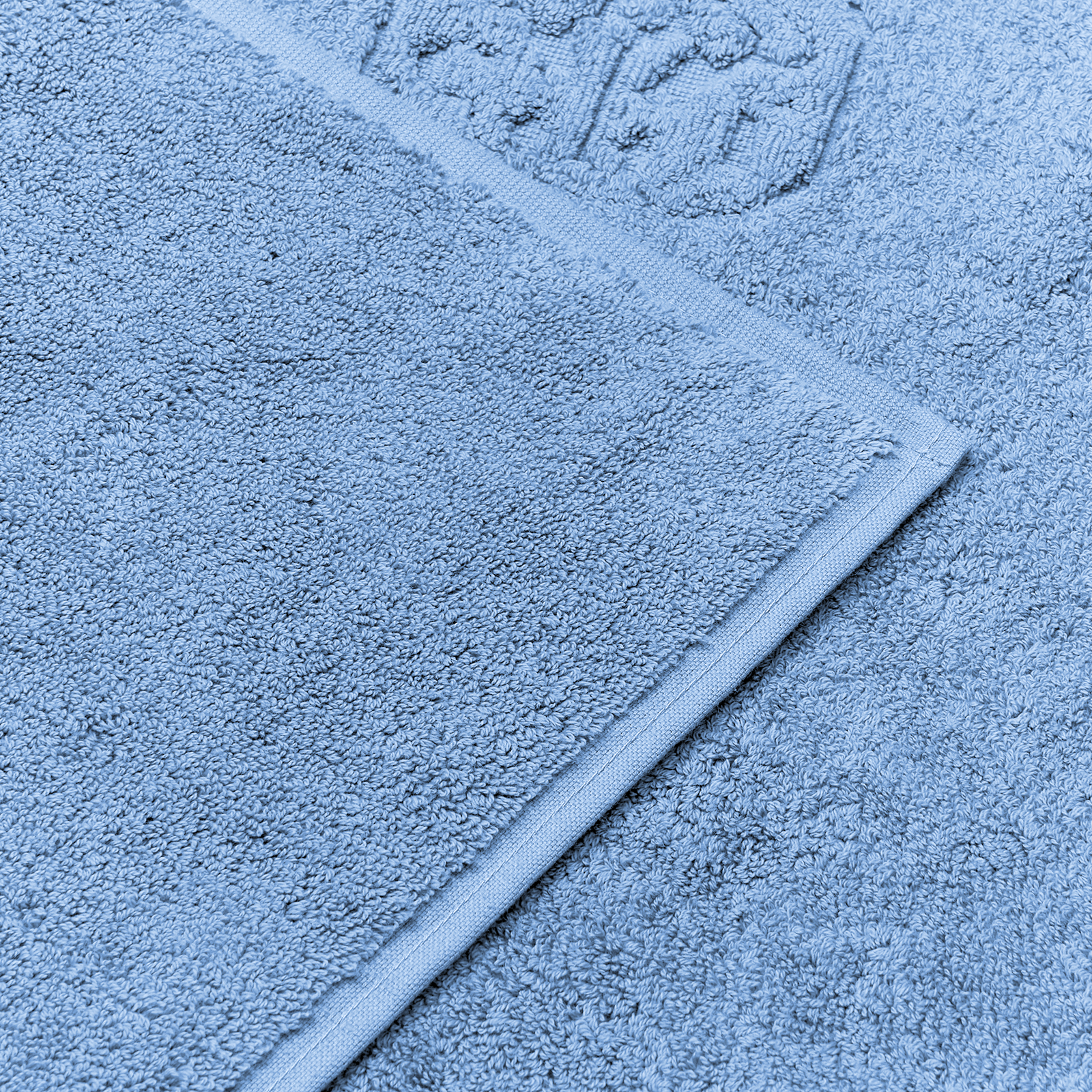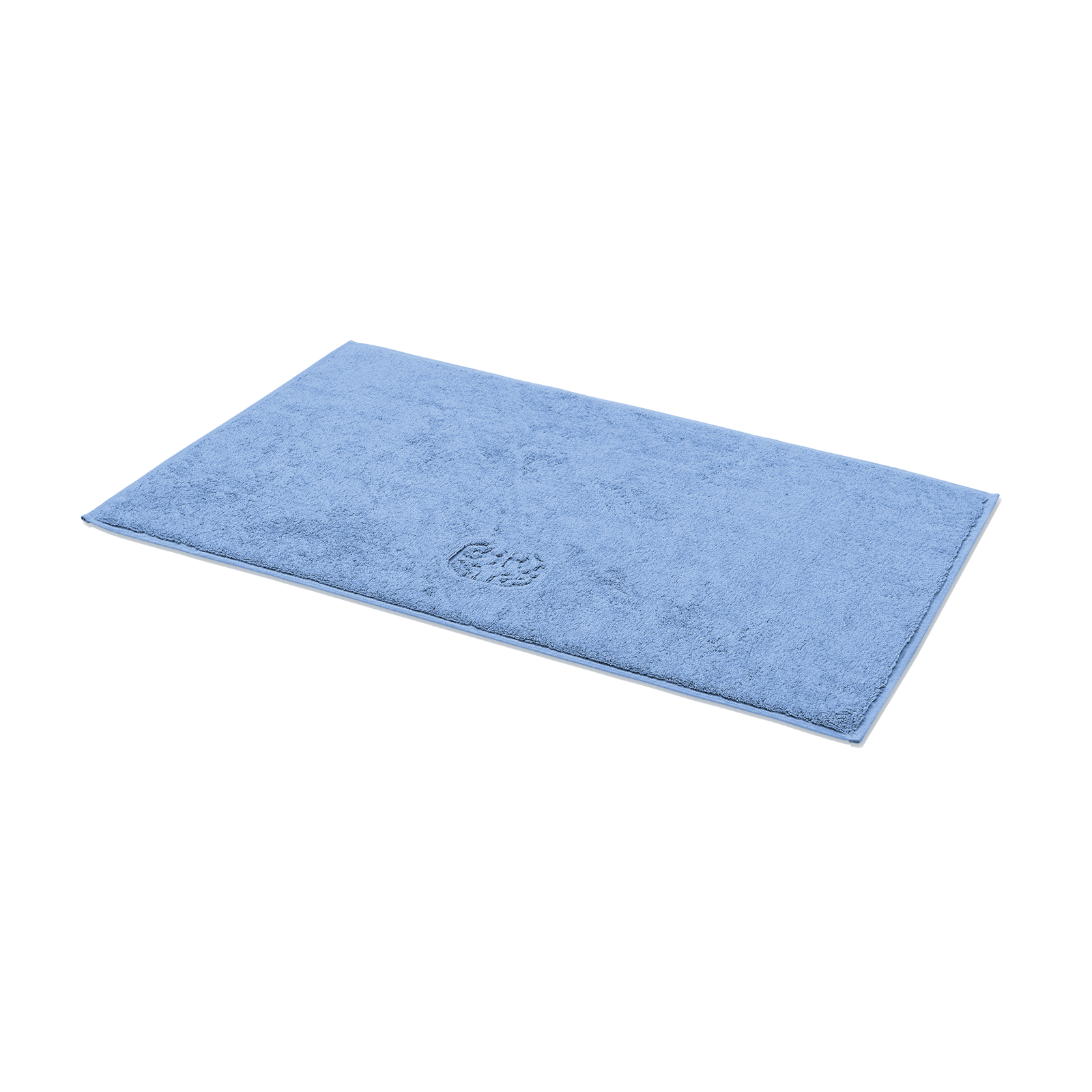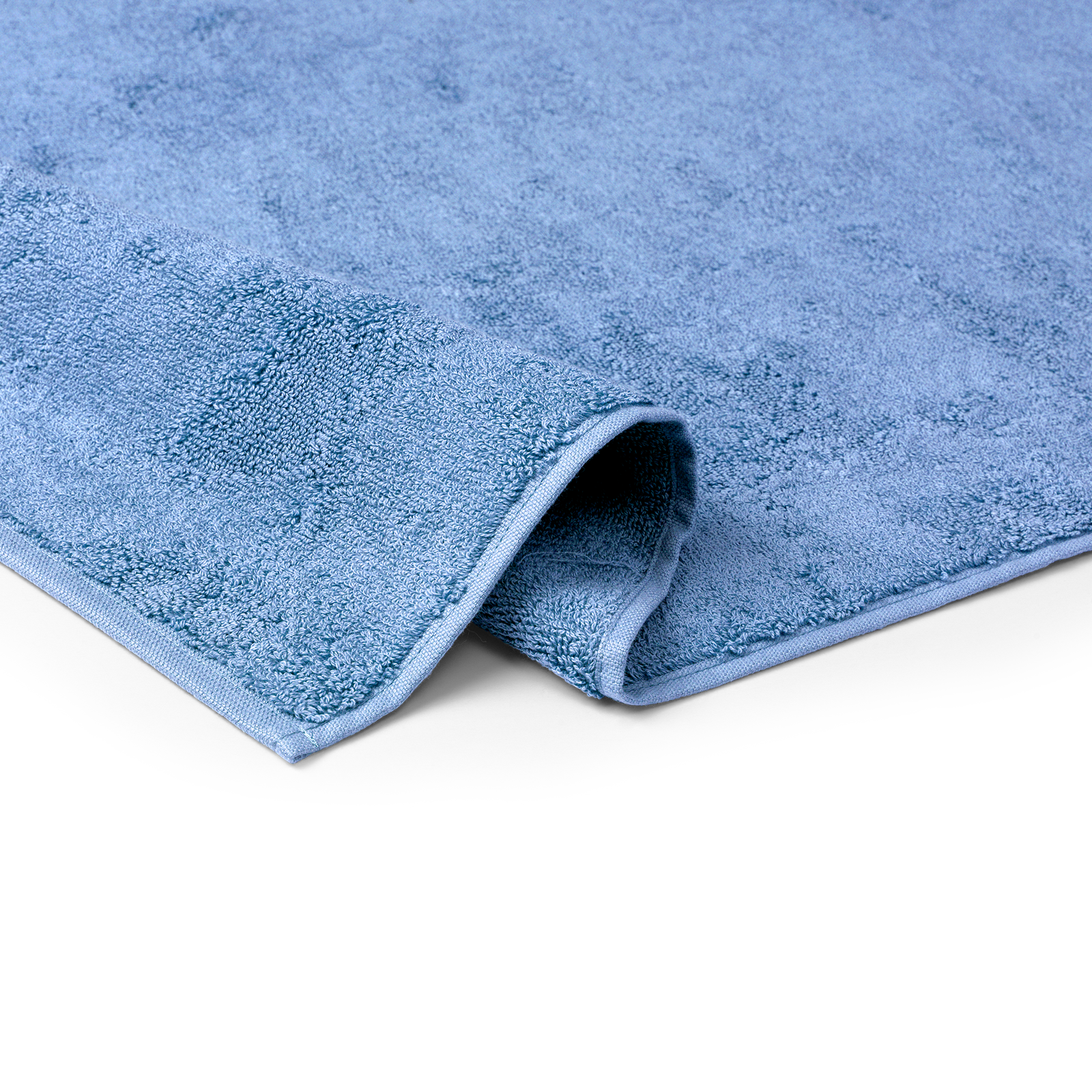 Den blå badrumsmattan Damask Terry är frottévävd av 100 % dubbeltvinnad kammad bomull. Den tjocka mattan känns mjuk, behaglig och härligt varm under dina fötter i badrummet. Bright Blue är en klarblå nyans.