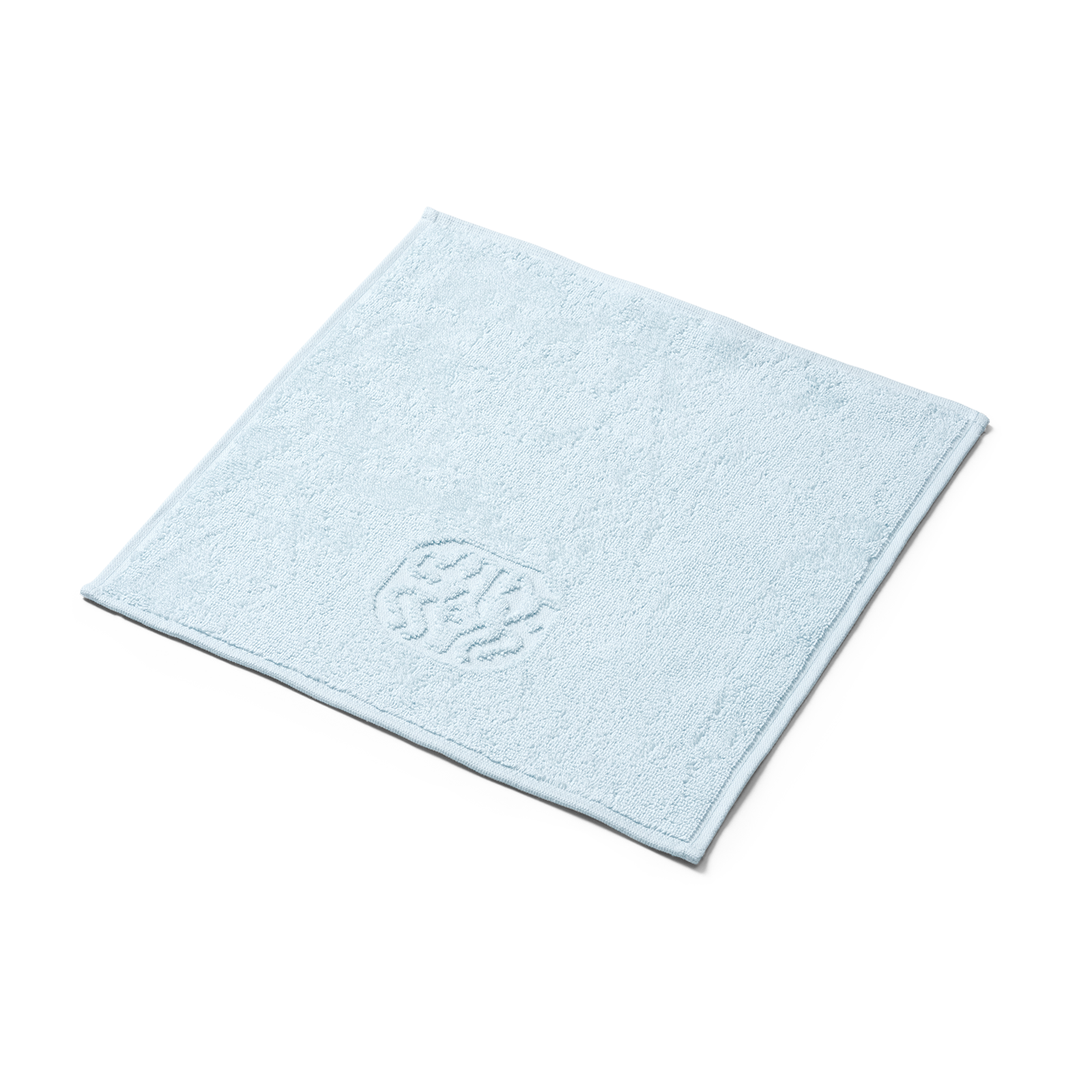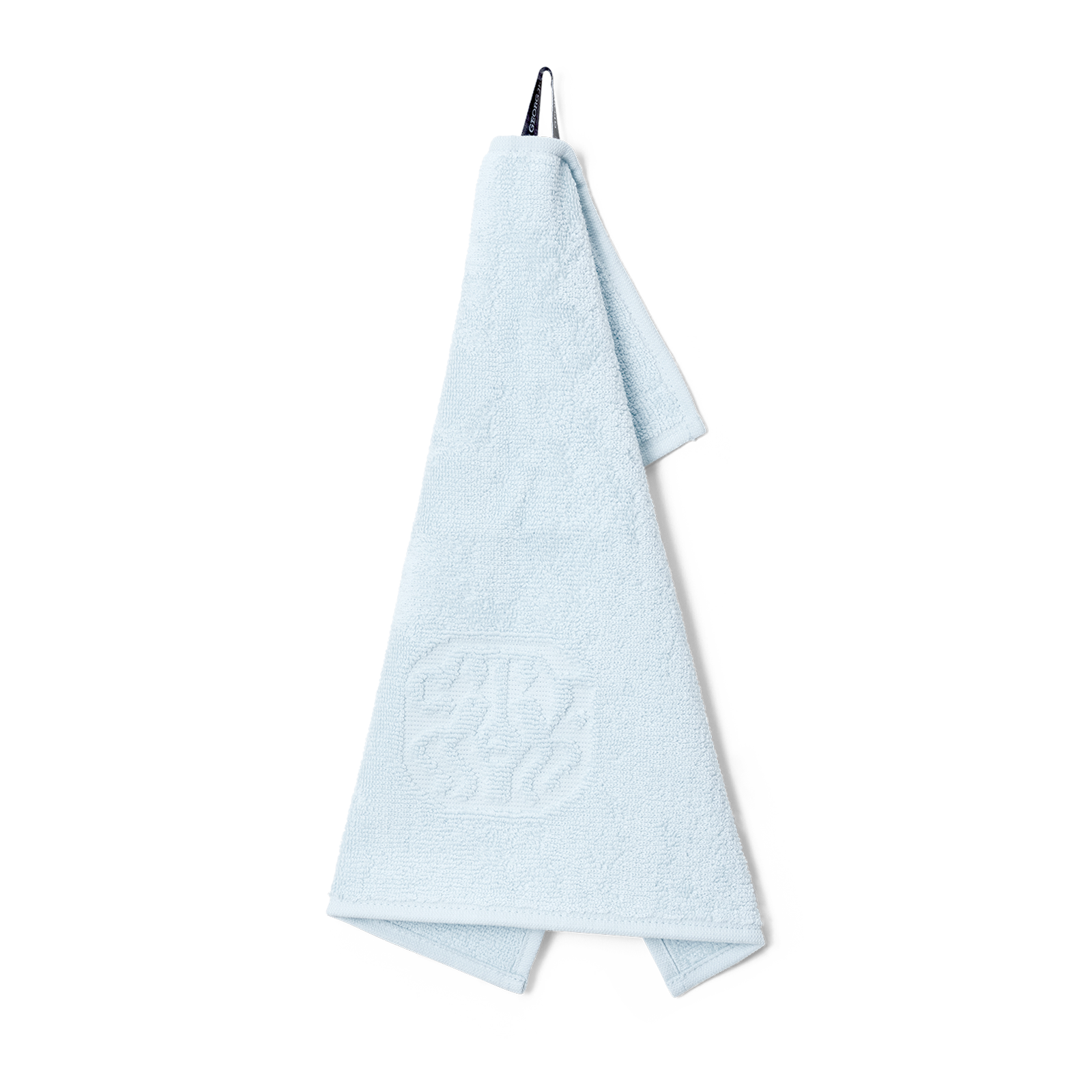 Damask Terry tvättlappen har ett enkelt uttryck med Georg Jensen Damasks ikoniska logotyp invävd som en elegant detalj. Minimal Blue är en mycket ljus blå nyans med ett inslag av aqua.