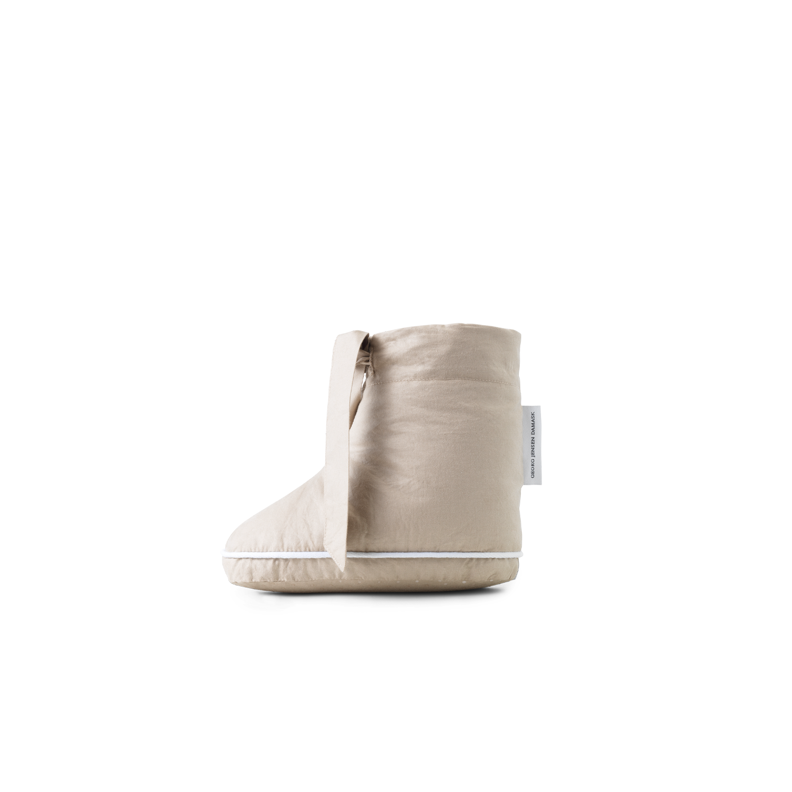 Mjuka och varma dunsockor för barn med elegant piping och knytband vid ankeln. Cloud dunstrumporna är satinvävda i 100 % bomull med fyllning av luftigt och andningsbart anddun och fjädrar. Anddunen och -fjädrarna är GRS‑certifierade. Färgen Cashmere är en brun nyans av grå med ett lugnt och exklusivt uttryck.