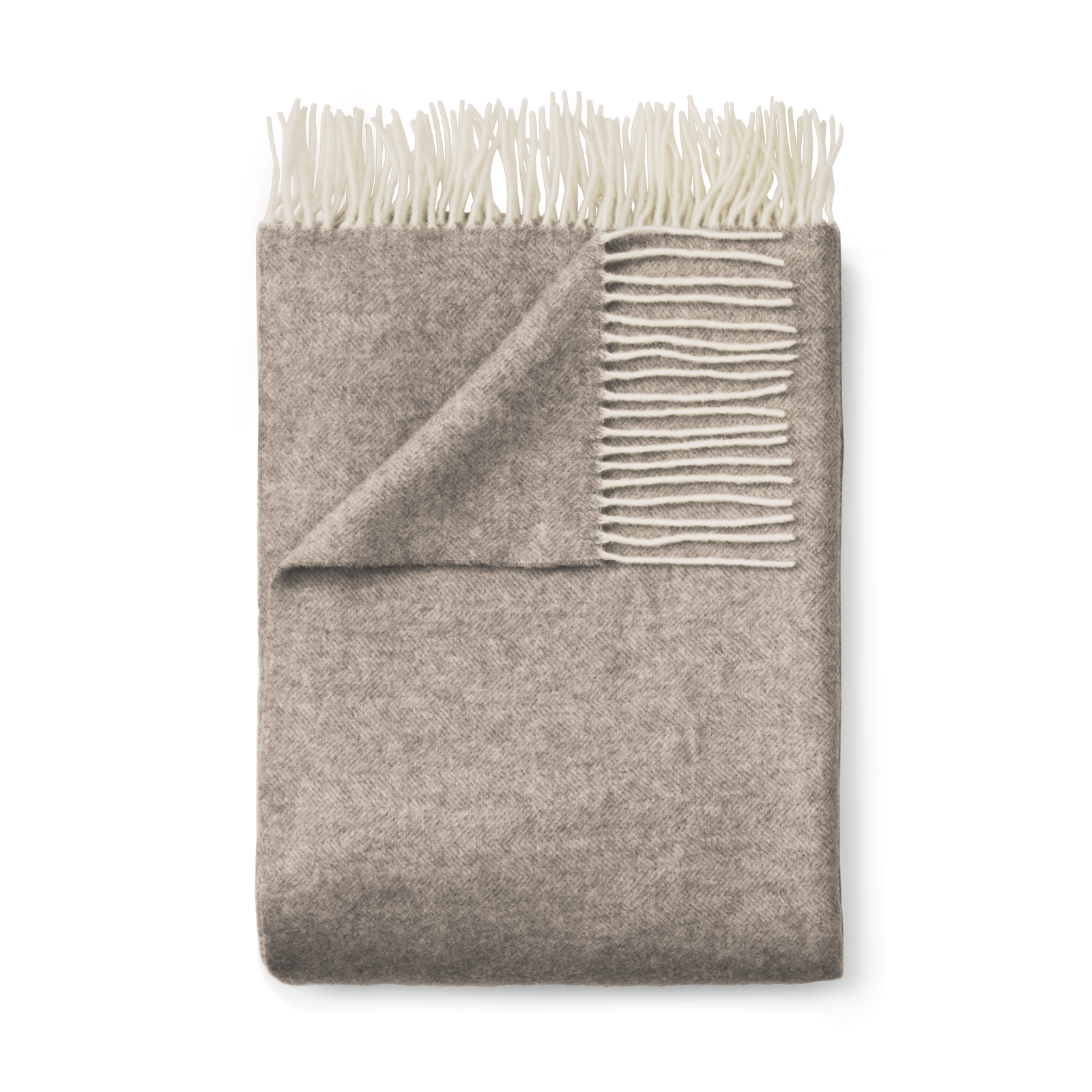 Elegant pläd i merinoull och kashmir. Drift-pläden i färgen Porcini Brown är vävd i ett raffinerat fiskbensmönster av garn i bruna och cremefärgade nyanser, vilket ger pläden ett vackert och naturligt uttryck. Drift-pläden är tillverkad av 90 % merinoull och 10 % kashmir, vilket gör att den behåller värmen väl och är perfekt att mysa med.