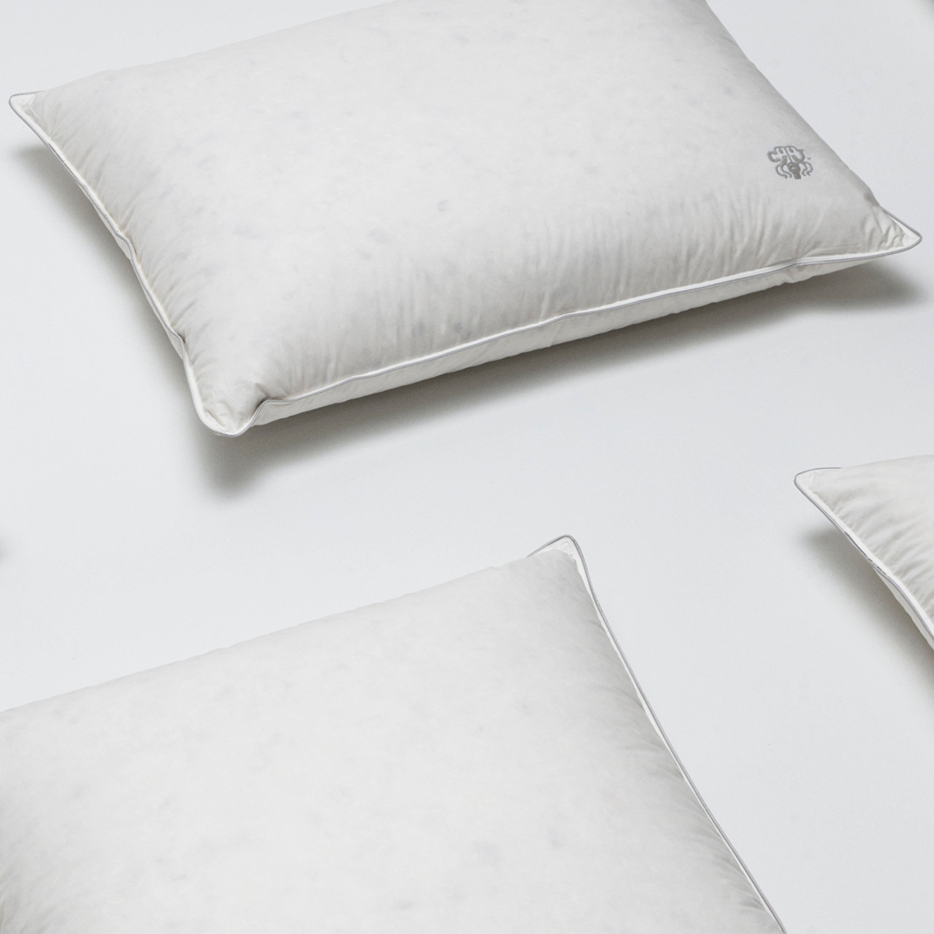 Ankdynan bär Georg Jensen Damask ikoniska logotyp som en diskret brodyr – en symbol för kvalitet och noggrannhet.