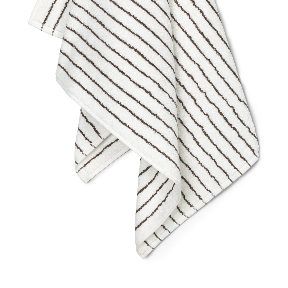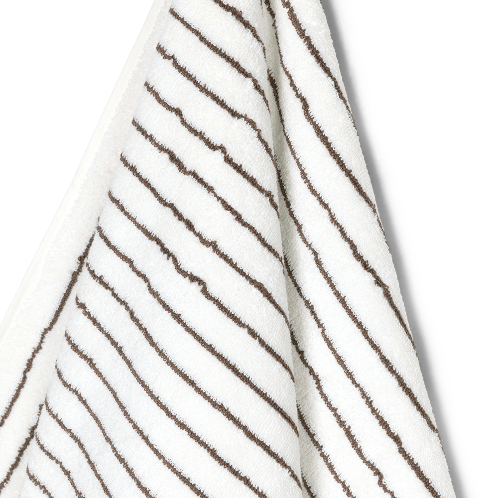 De smala mörkbruna och vita ränderna ger handduken en modern look som skapar liv i badrummet. Kombinera den eventuellt med enfärgade handdukar.
