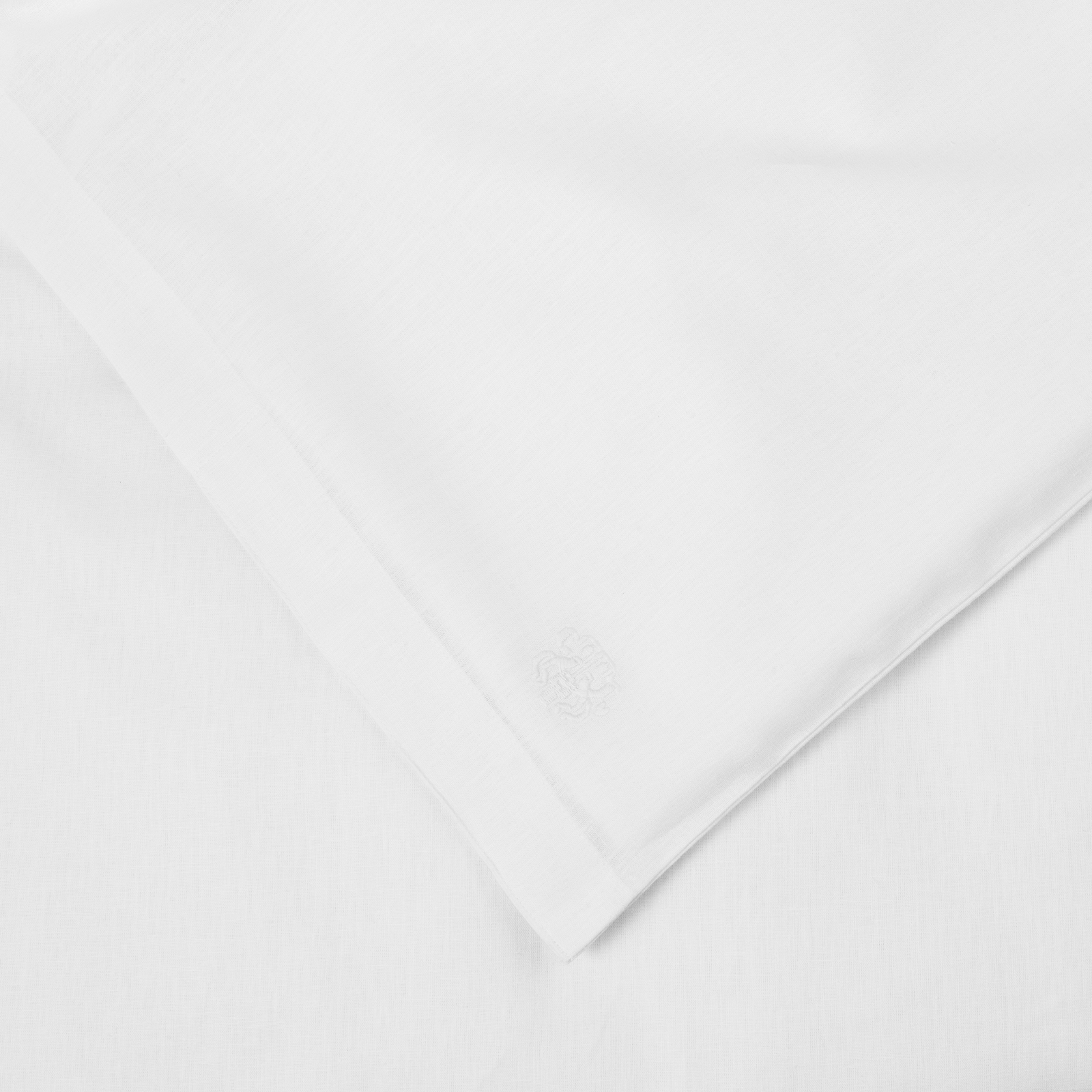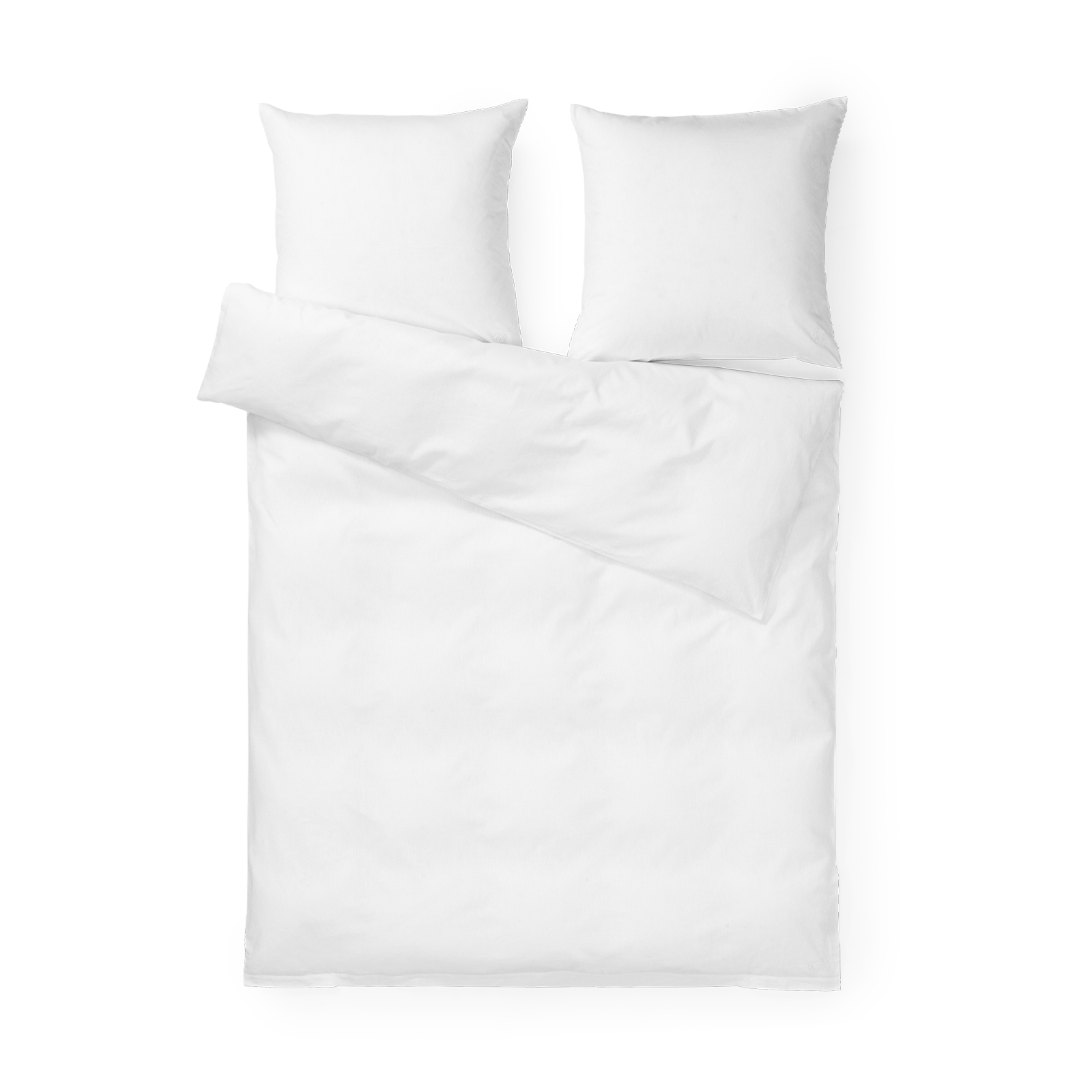 Even sängkläderna är vävda i linne och bomull för att förena de två materialens unika egenskaper. Linnets naturliga textur kombinerad med bomullens mjukhet och formstabilitet. Tillsammans ger det en vacker, matt och mjuk yta – samt andningsbara och slitstarka sängkläder.