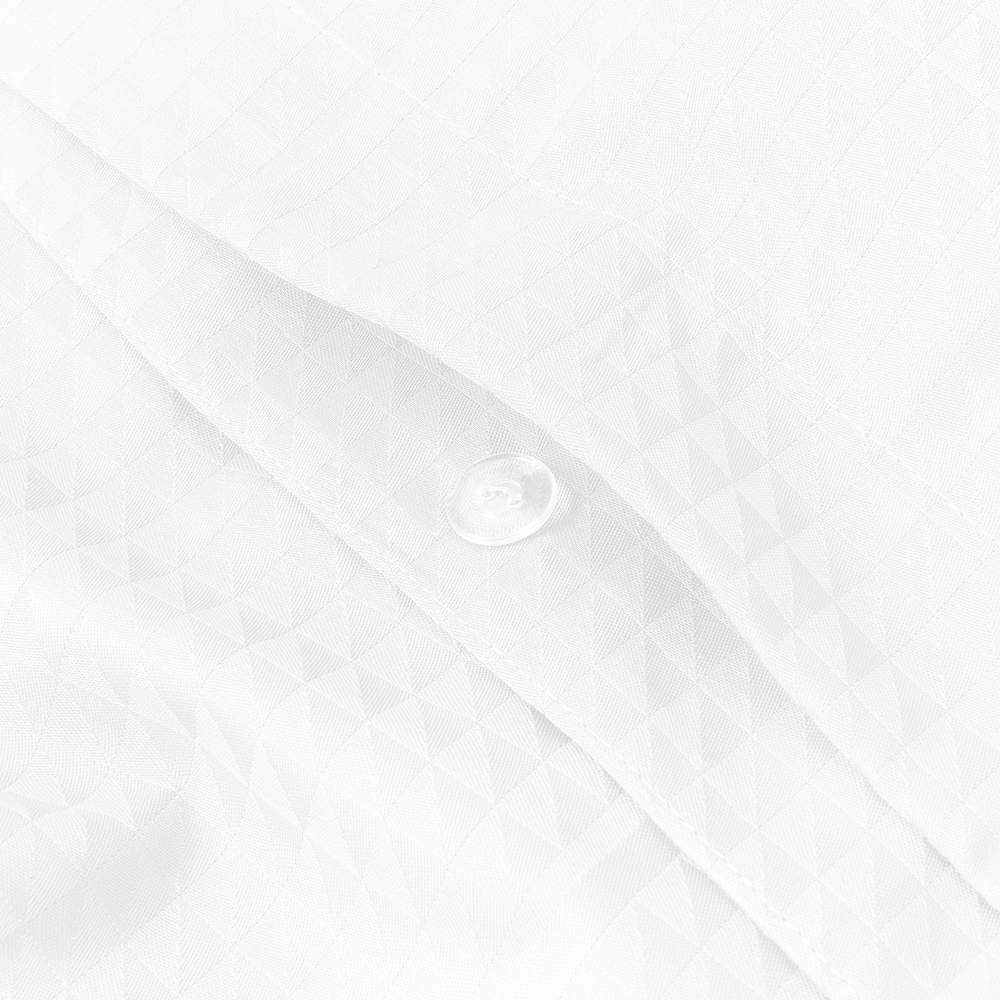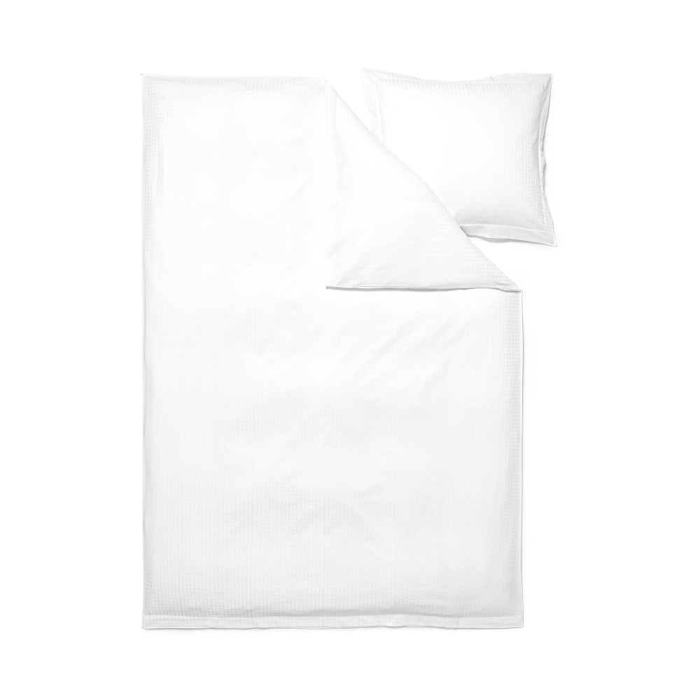 Georg Jensen Damasks Facet-påslakan för familjens yngsta har en strikt design och är damastvävd i 100 % kammad bomull, vilket ger en mjuk och slät yta. Med Facet-designen använder textilkonstnären Jette Nevers den klassiska damastvävningen för att skapa ett elegant ljus- och skuggspel.
