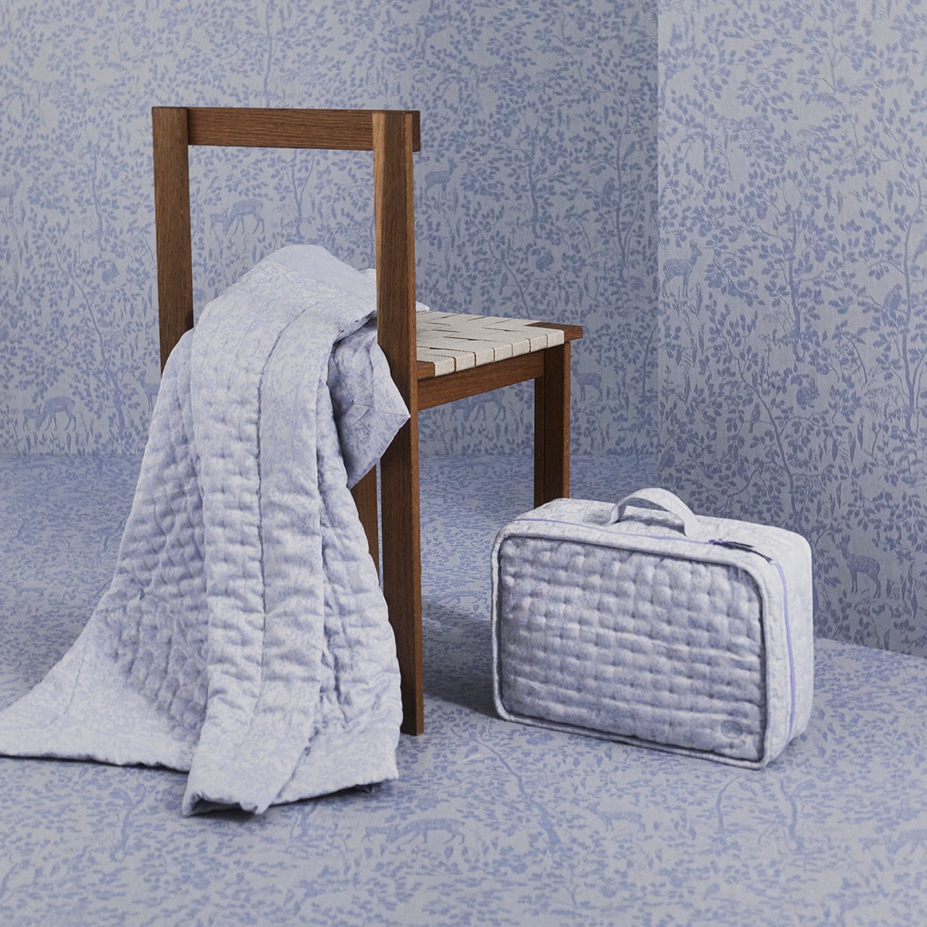Motivet i Forest-kollektionen kommer från en gobeläng från 1800-talet som hittats i Georg Jensen Damasks historiska arkiv. Förutom den mjuka quiltade filten innehåller kollektionen även ett bäddset och en pyjamas i de två färgerna Clear Blue och Misty Yellow.