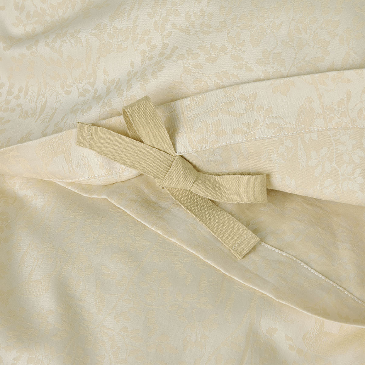 Bäddset ur Forest-kollektionen i ekologisk bomull i den ljusgula färgen Misty Yellow. Motivet i kollektionen Forest är hämtat från en gobeläng från 1800-talet som finns i Georg Jensens Damasks arkiv.