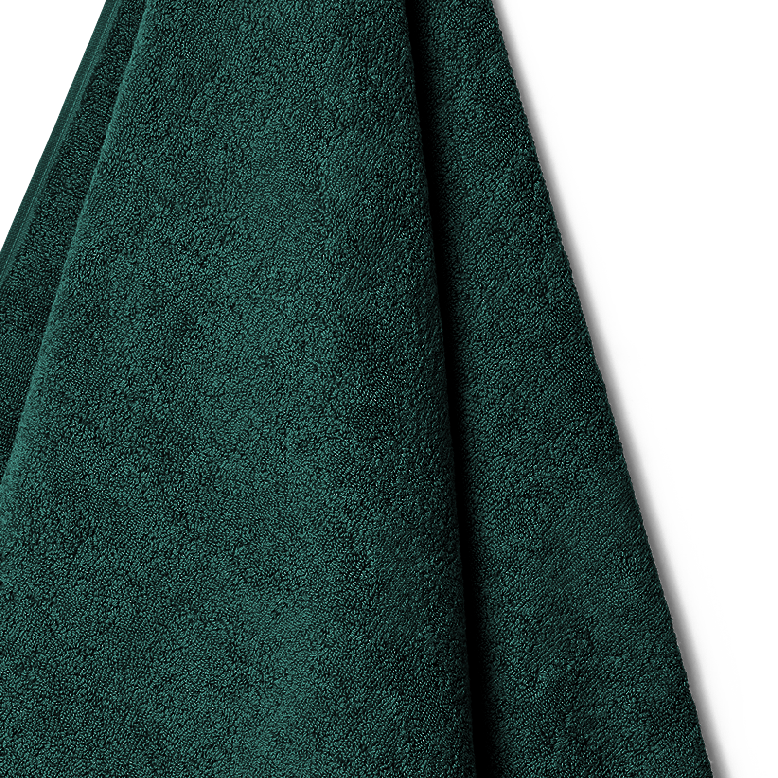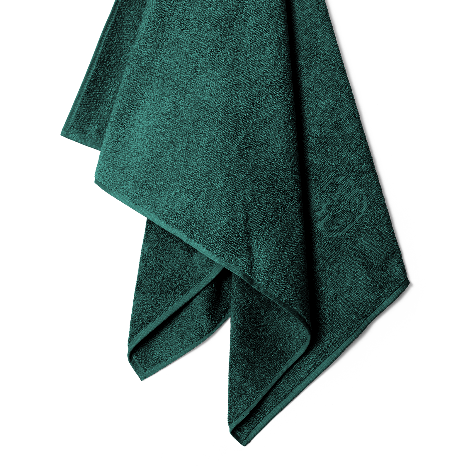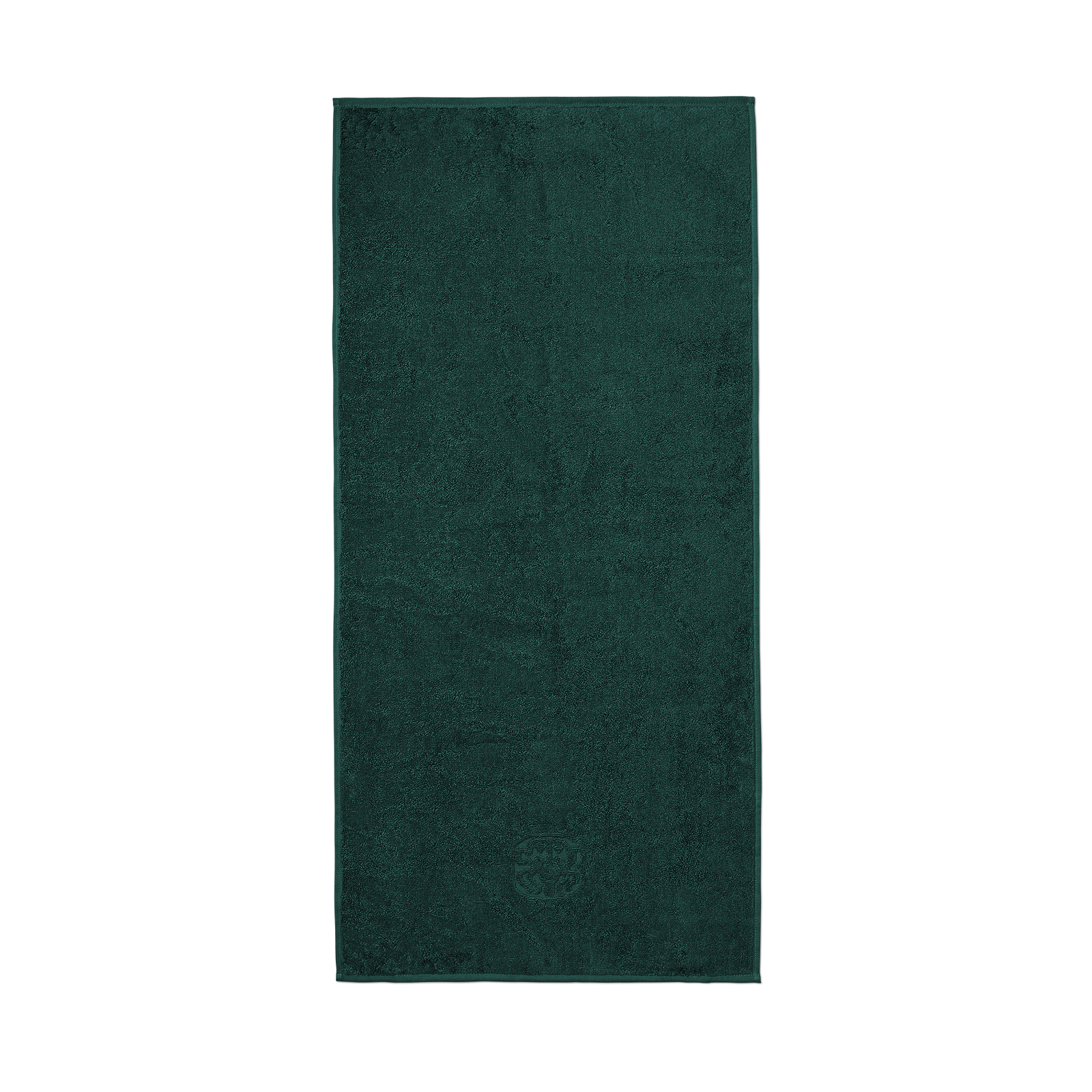 Damask Terry handduken har ett enkelt uttryck med Georg Jensen Damasks ikoniska logotyp invävd som en elegant detalj. Evergreen är en mycket mörk och kall grön. Klassisk och sofistikerad.
